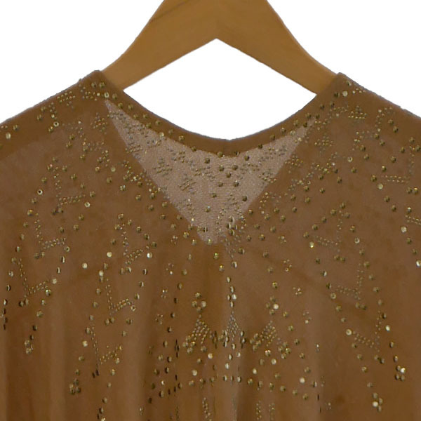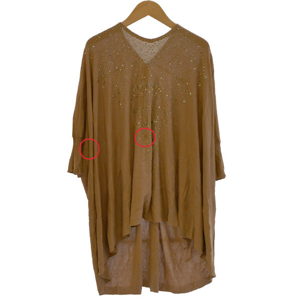 ダイアグラム グレースコンチネンタル Diagram GRACE CONTINENTAL メタルモチーフトップス ニット カットソー Vネック 薄手 七分袖 36 キャメル /AG レディース