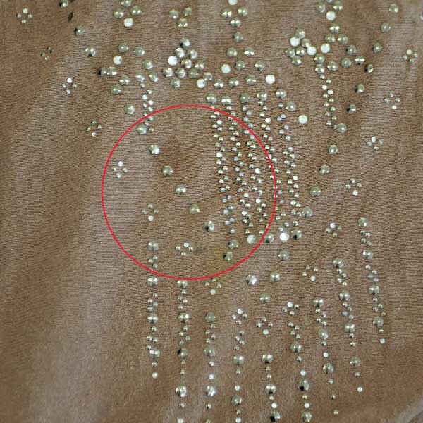 【状態】この商品には下記のようなダメージがあります。 ・前身頃中心辺りと右脇辺りに薄いシミ。 ・7枚目写真のダメージ赤丸2つの間辺りに一部色褪せのような部分あり。 ・前身頃裾辺りに一部糸ほつれあり。 ※全体的に中古品としての使用感と上記のようなダメージがありますが、通常使用には支障のない商品です。掲載写真や記載内容をご確認いただき、ご理解の上ご購入ください。