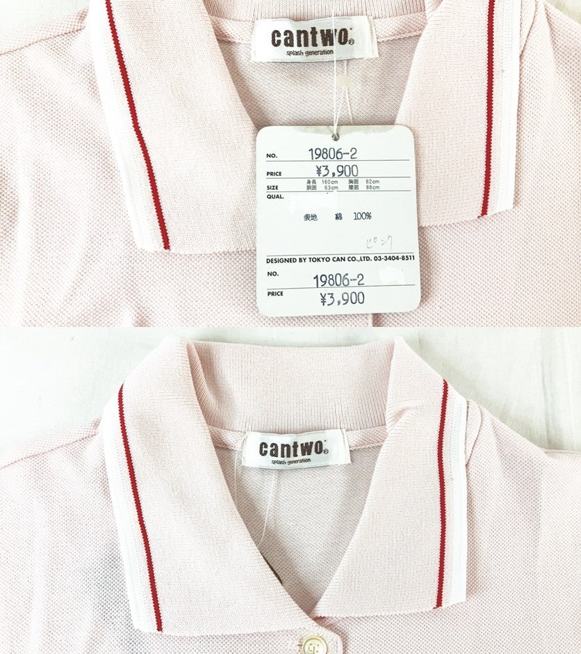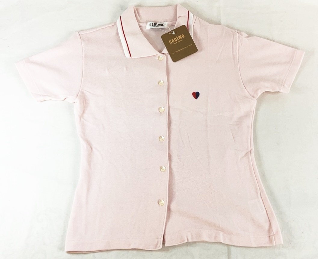 キャンツー cantwo ピンク系 ポロシャツ ニットブラウス 半袖 フルボタン Mぐらい 160-82-63-88 タグ付未使用品 MX-11