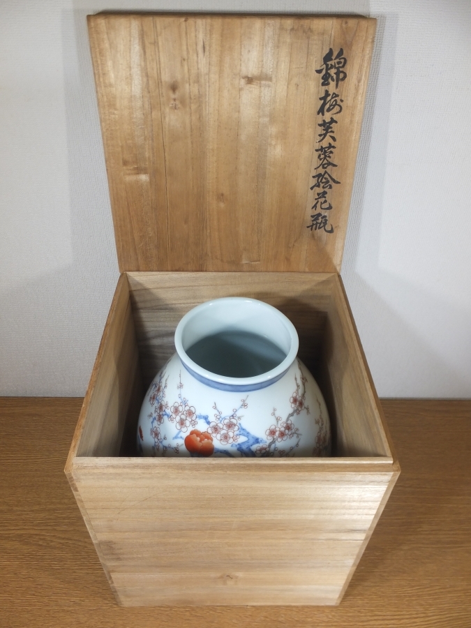 説明 | 佐賀県出身 陶芸家で人間国宝、 12代 今泉今右衛門の『錦梅芙蓉絵花瓶』無傷 共箱です。 状態は良好です。 このままで飾って楽しめますし、使用しても楽しめます。 高台内に「今右衛門」と銘があります。 描かれた梅と芙蓉の紋様が、大変綺麗で上品な作品です。 花を生けずともこのままで飾って楽しめます、画像で御確認下さい。 コレクターの放出品です。 ★九州地方の買出し品です。 買出したままでの出品です、御入札宜しくお願い致します。 入札は早めにお願い致します。 一人でも入札があれば梱包作業に入りますので、素早い発送が可能です。 早期終了あり。 12代 今泉今右衛門は、 陶芸家。 今泉家十二代。 佐賀県生。 名は平兵衛。 有田工業卒。 色鍋島の復活再興に努め、 また伊万里陶器も制作した。 人間国宝。 昭和50年(1975)歿、77才。 |
