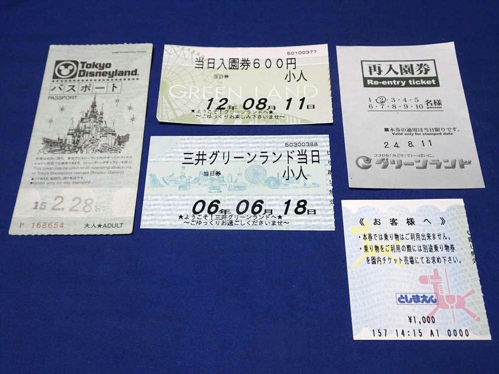 E493q 遊園地テーマパーク入場券半券再入場券5枚 東京ディズニーランド 三井グリーンランド としまえん