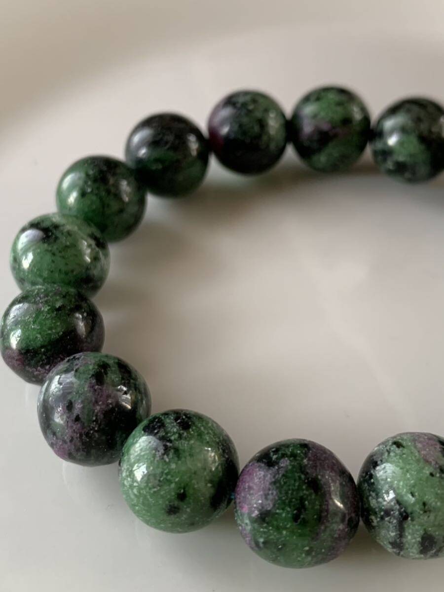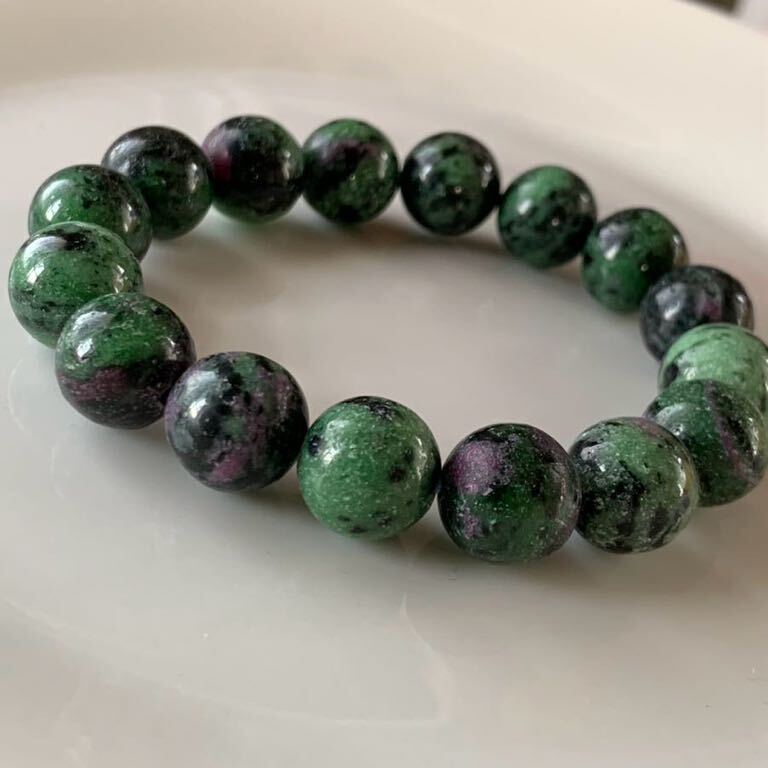 天然石★ルビーインゾイサイト ブレスレット★大玉 13mm 17cm