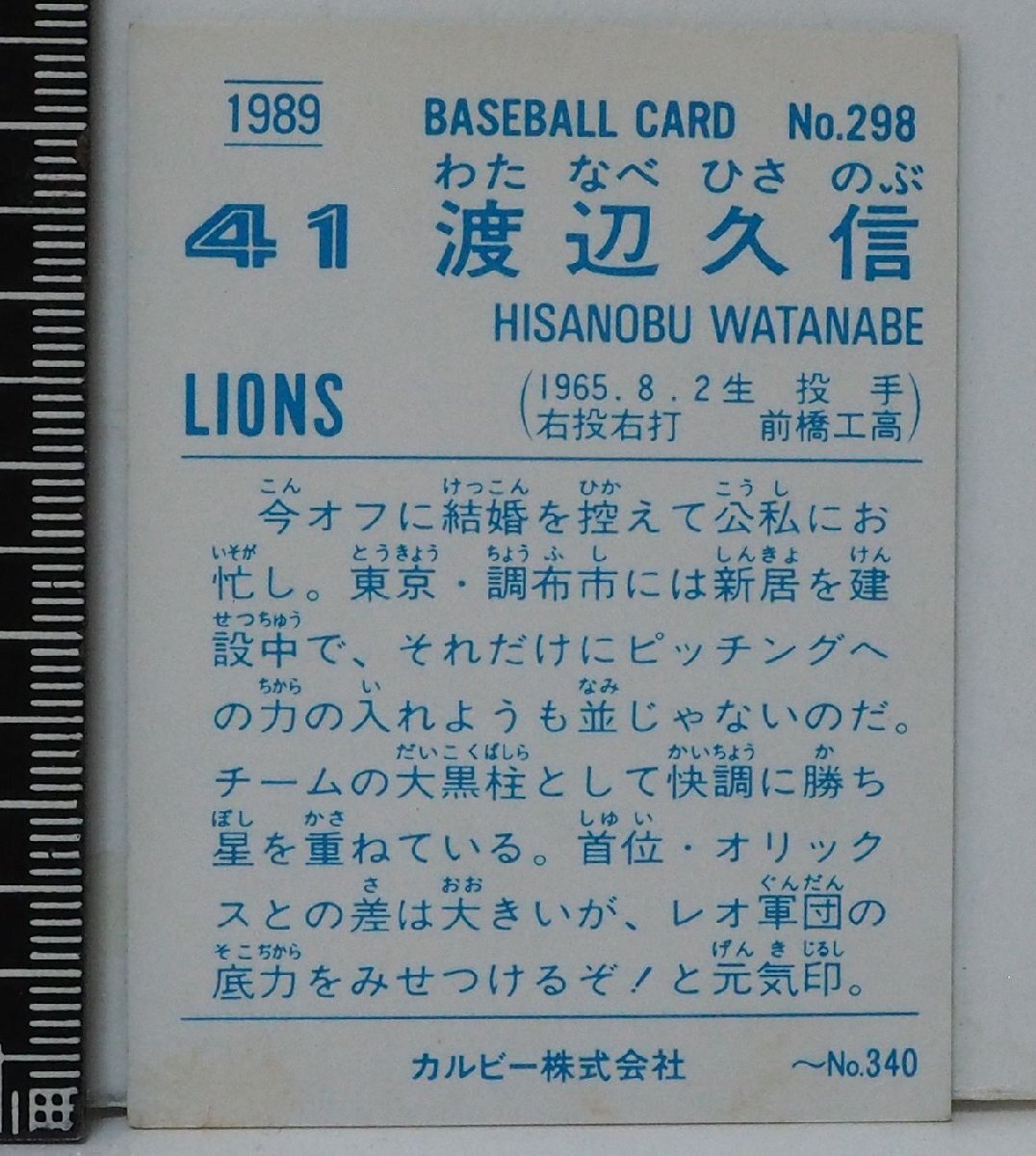 89年 カルビー プロ野球カード No.298【渡辺 久信 投手 西武ライオンズ】平成元年 1989年 当時物 Calbeeおまけ食玩BASEBALL【中古】