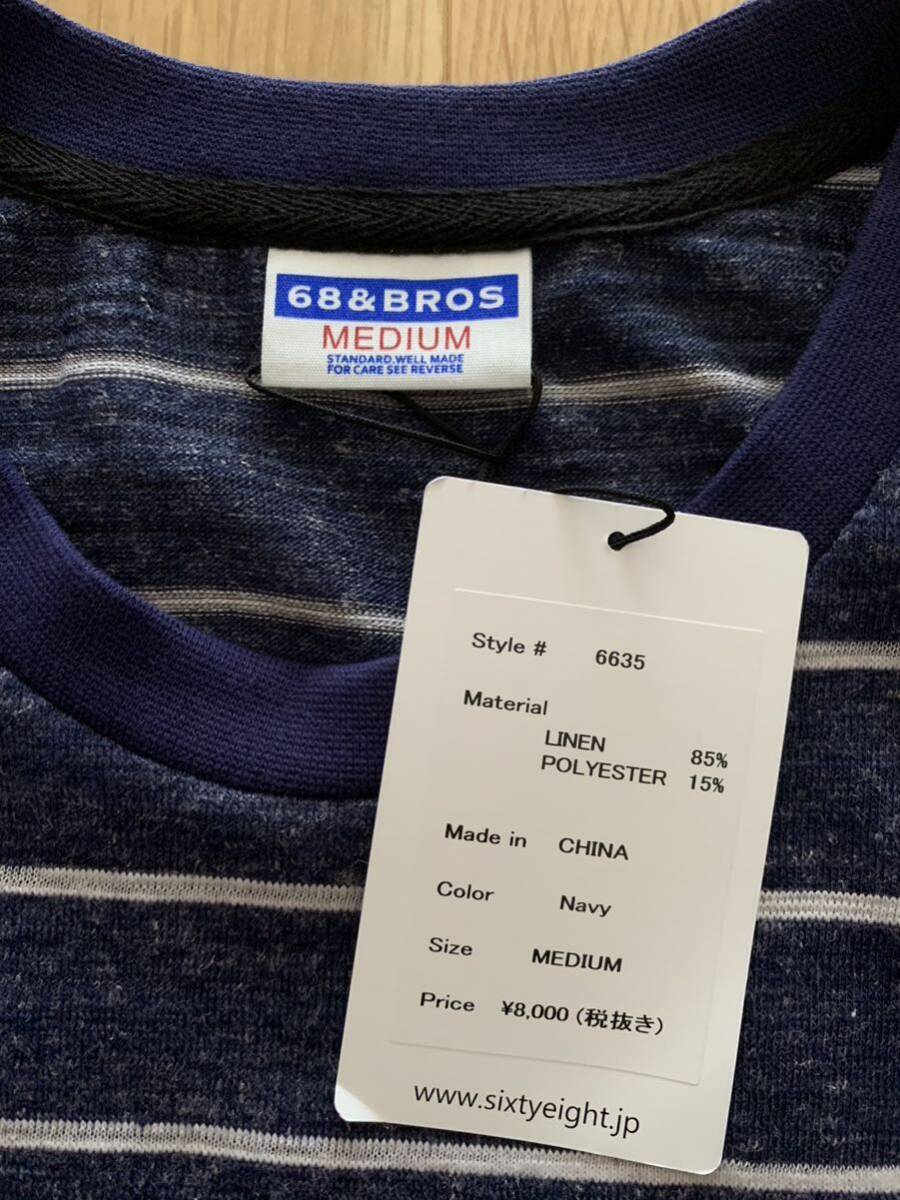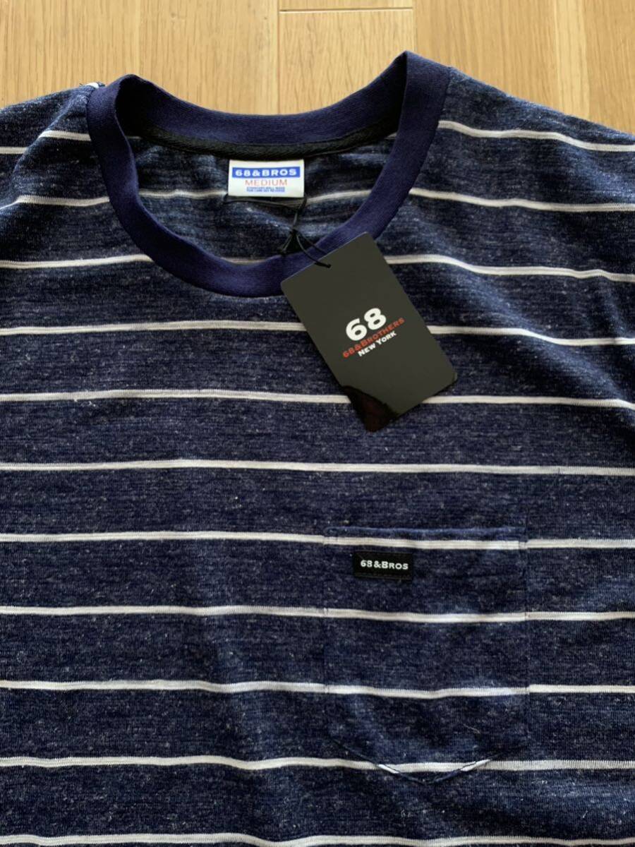 68&ブラザーズのポケットTシャツ、サイズM、カラーネイビー、タグ付き新品未使用品です。