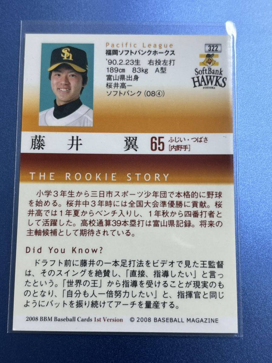 2008BBMベースボールカード1st 322 藤井翼 福岡ソフトバンクホークス レギュラーカード RC ルーキーカード
