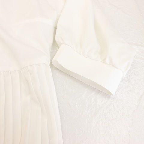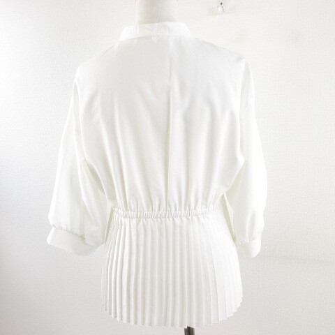 ハドソンハニー Hudson honey カットソー ブラウス プリーツ 七分袖 白 M *A211 レディース