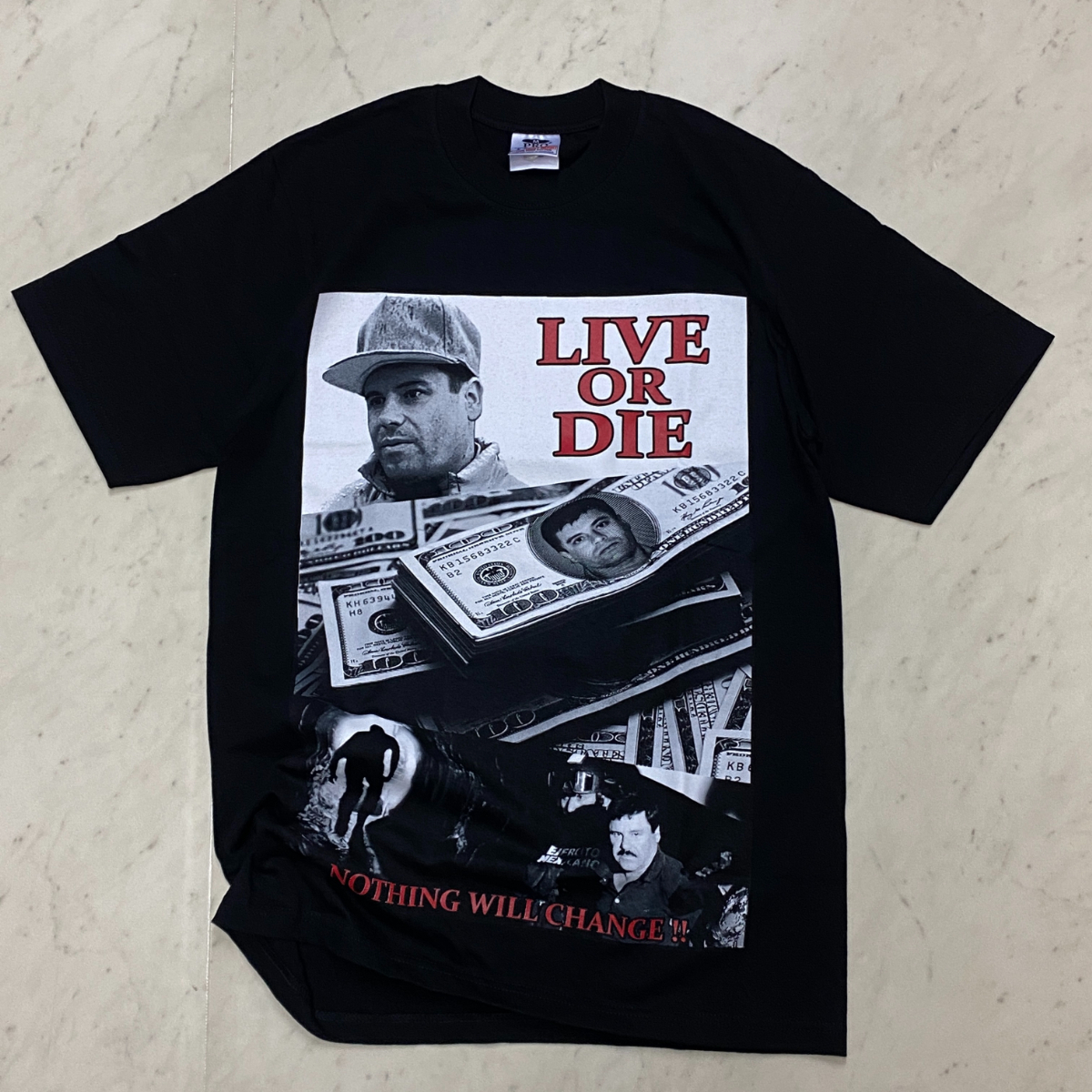 LA発 【L】 Live or Die アンダーグラウンド グラフィック ヘビーウェイト 半袖 Tシャツ 黒 オーバーサイズ 西海岸 チカーノ メキシコ
