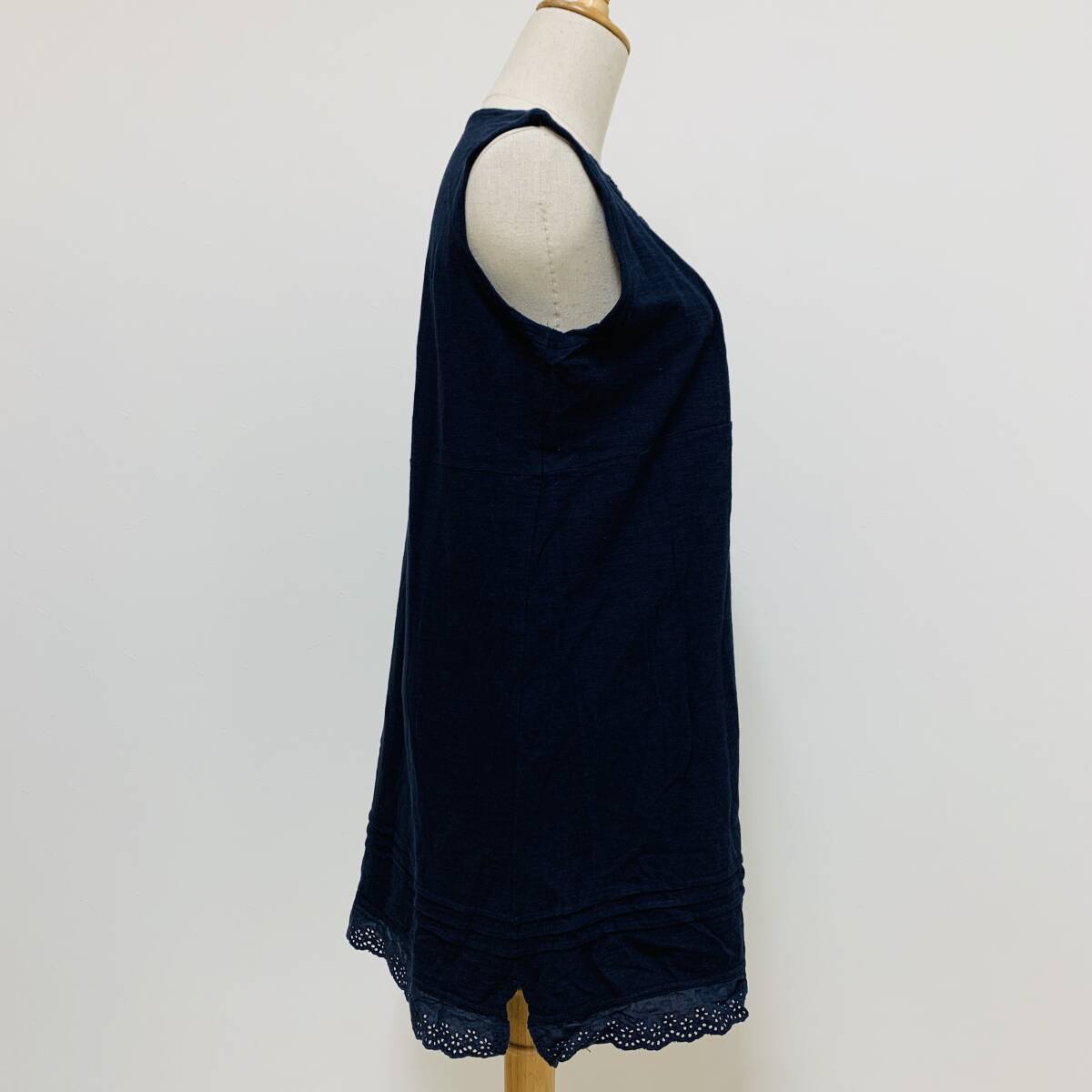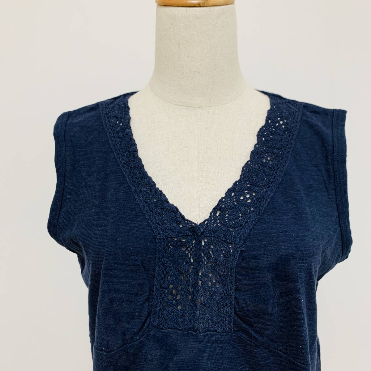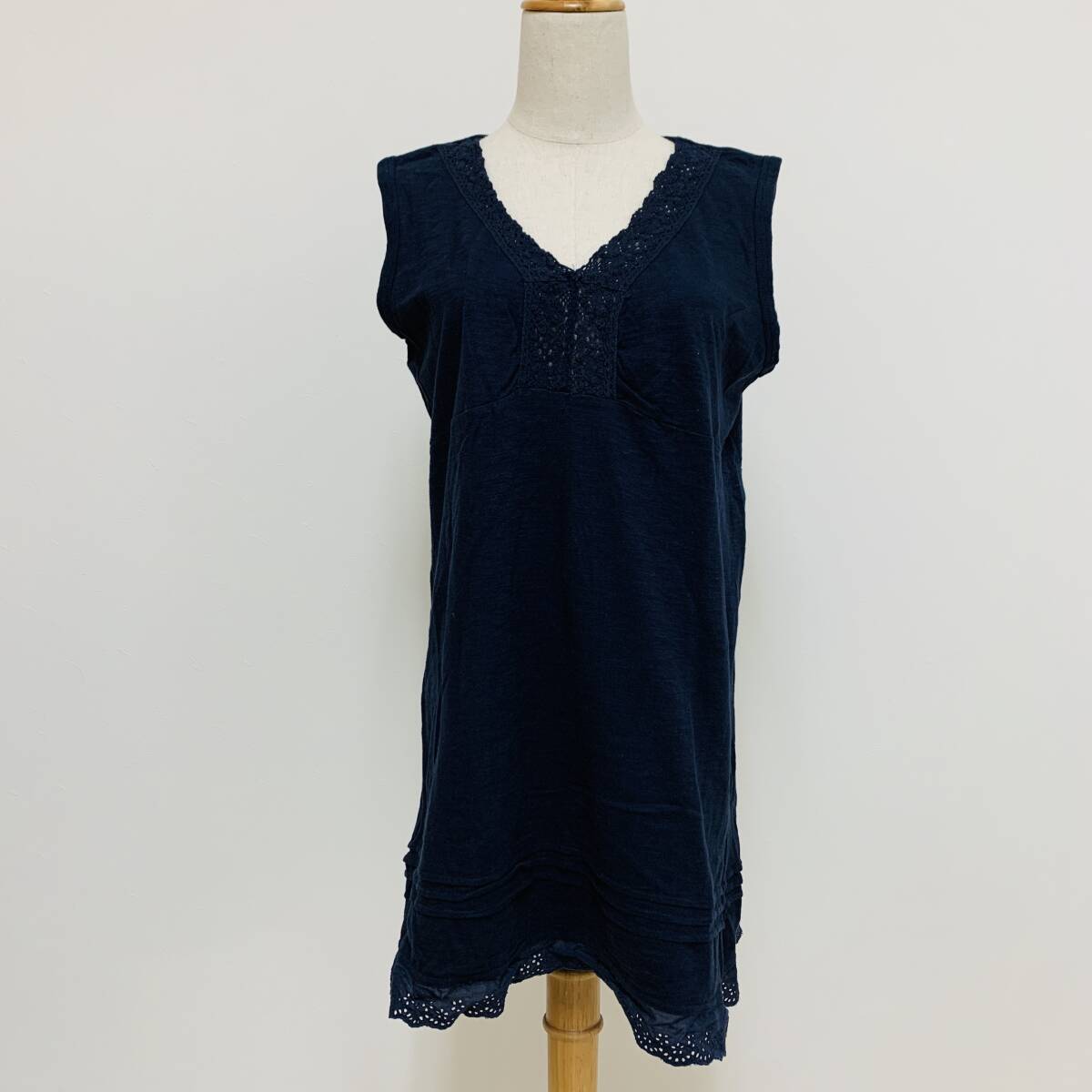 YH0370 Petitreitre ペティトレイトル レディース レース ノースリーブチュニック Vネック LL ネイビー 綿100% 万能 USED 古着