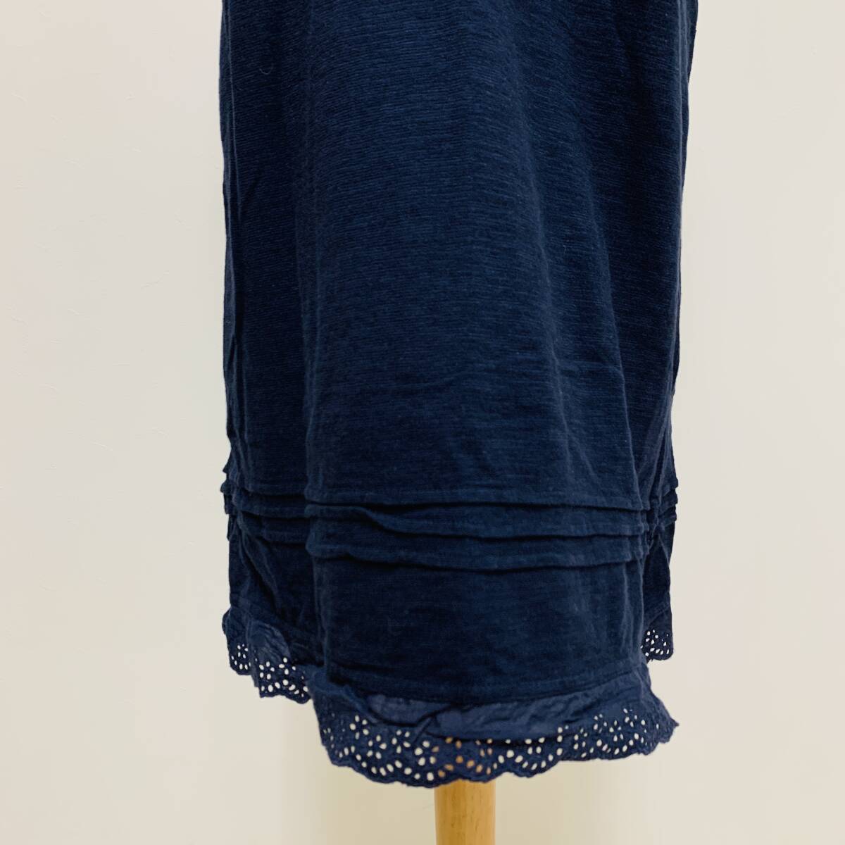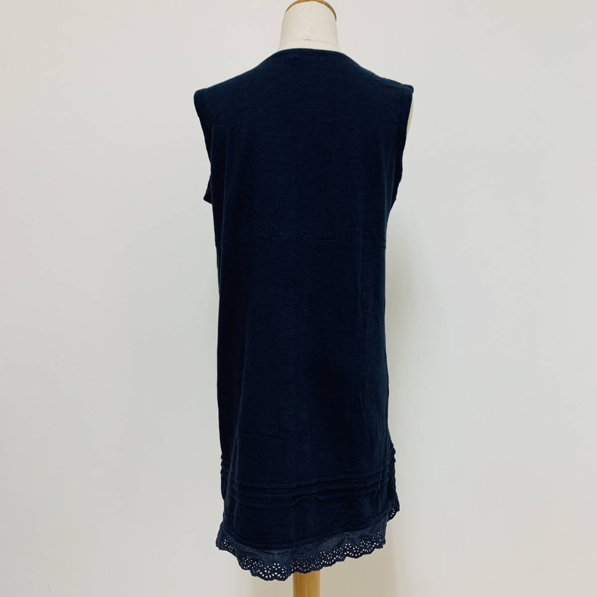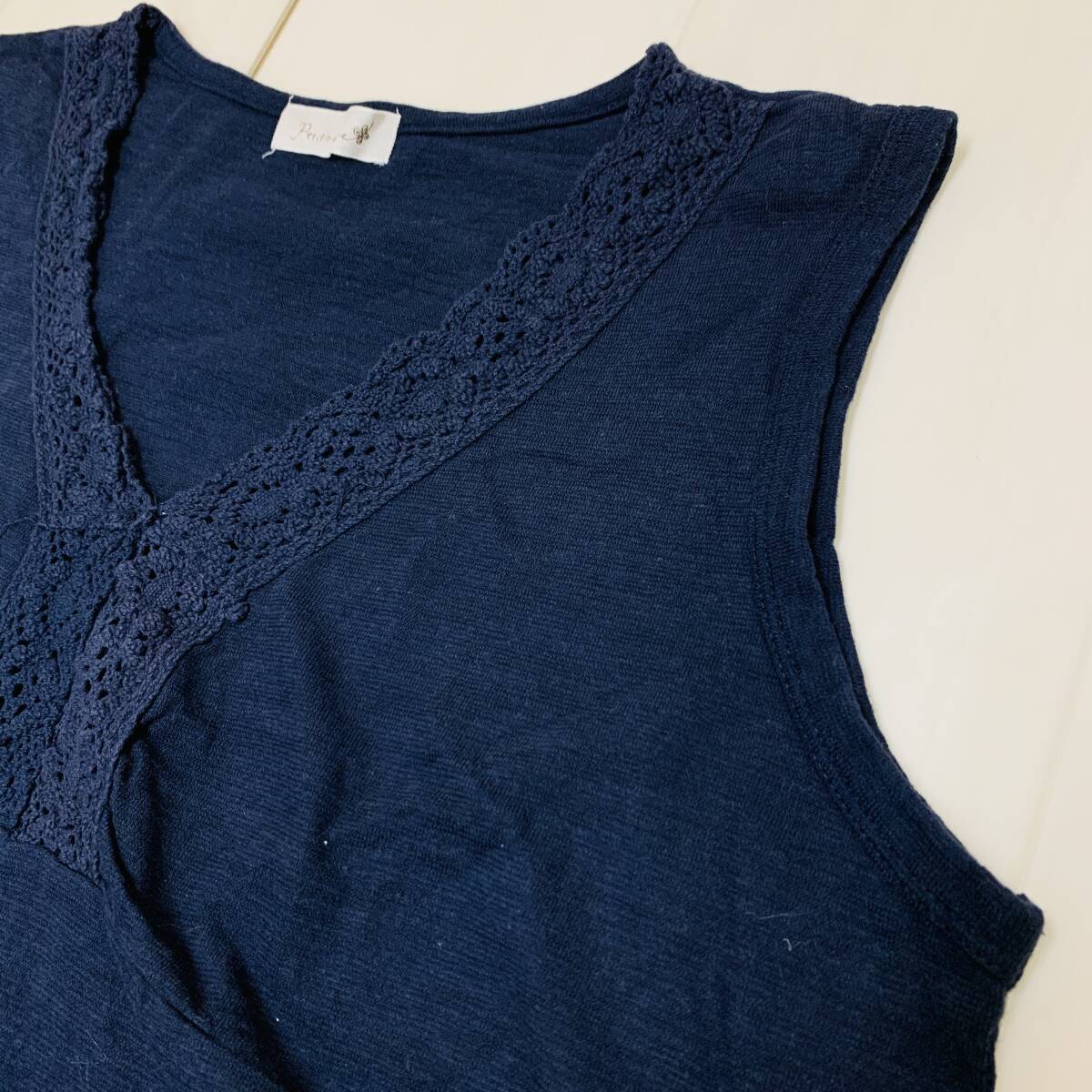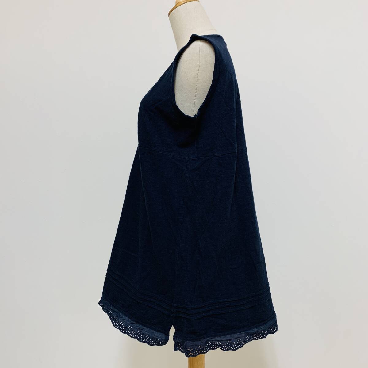 YH0370 Petitreitre ペティトレイトル レディース レース ノースリーブチュニック Vネック LL ネイビー 綿100% 万能 USED 古着