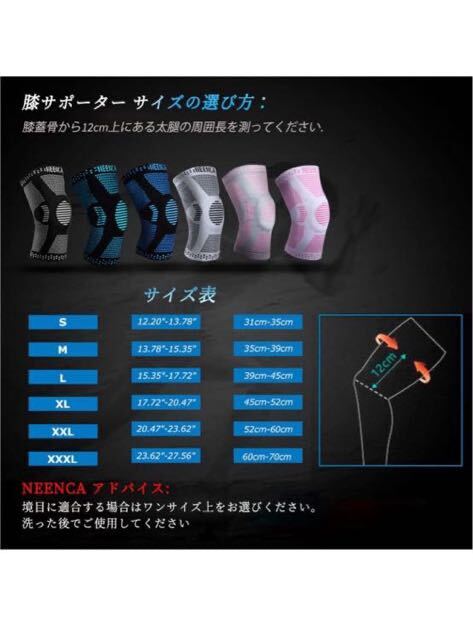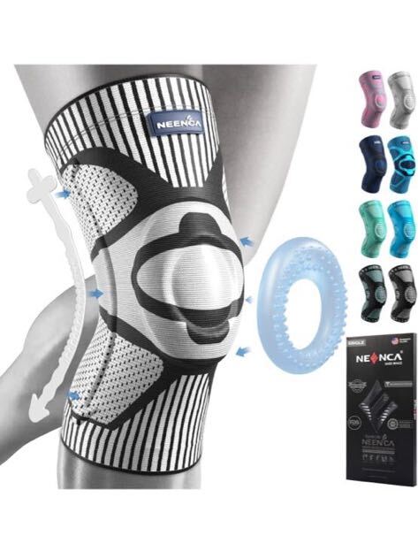 NEENCA 膝サポーター:特許取得、「膝蓋骨ゲルパッド」と「サイドバネ(2本)」を設置しております。膝関節に安定させ、痛みを軽減できます。両側のサポート力を増強し、靭帯の損傷を予防します。膝の負担を分散させる一方、膝の動きを影響ありません。