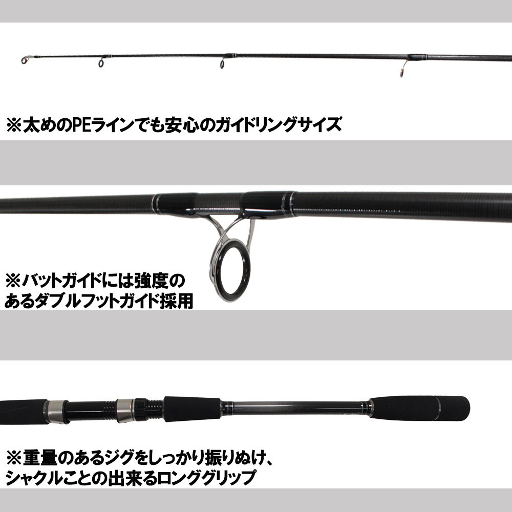 ベイトが小さく40g前後の小型ジグしか反応しないシチュエーションから80gまでのサイズをしっかり操作できるロッドです