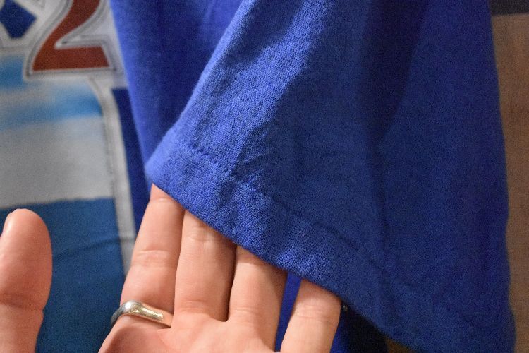 デッドストック品◎70sビンテージJAWS2ジョーズ2半袖クルーネックプリントTシャツXLブルー青アメカジ映画ムービーTシャツn24183