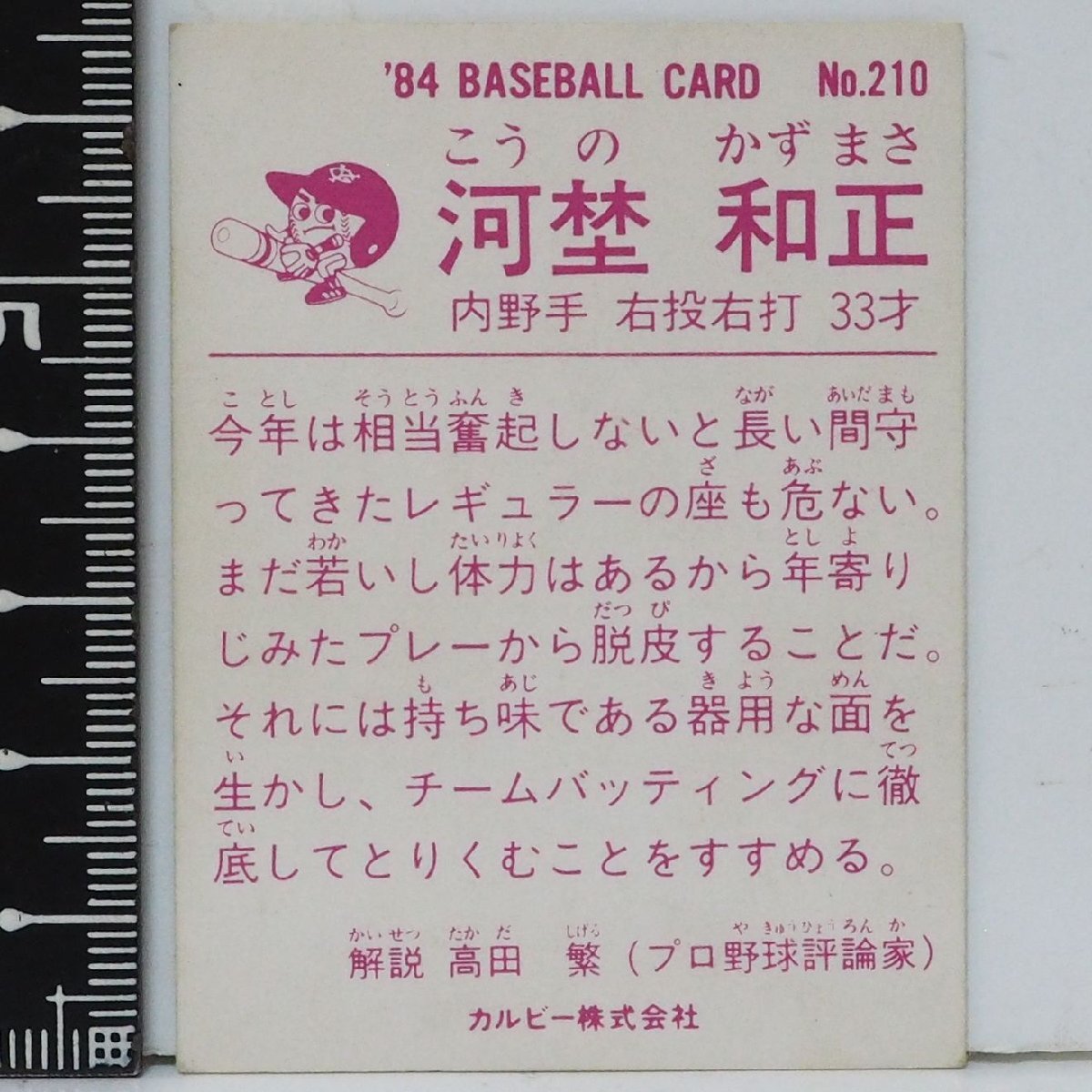 84年 カルビー プロ野球カード No.210【河埜 和正 内野手 読売ジャイアンツ巨人】昭和59年 1984年 当時物 Calbee おまけ 食玩 BASEBALL中古