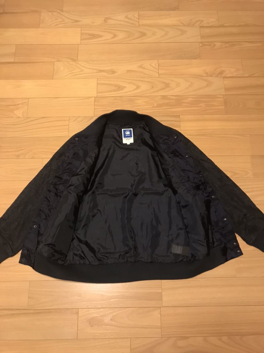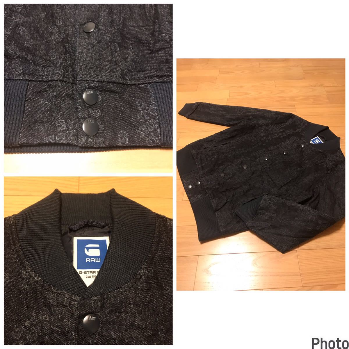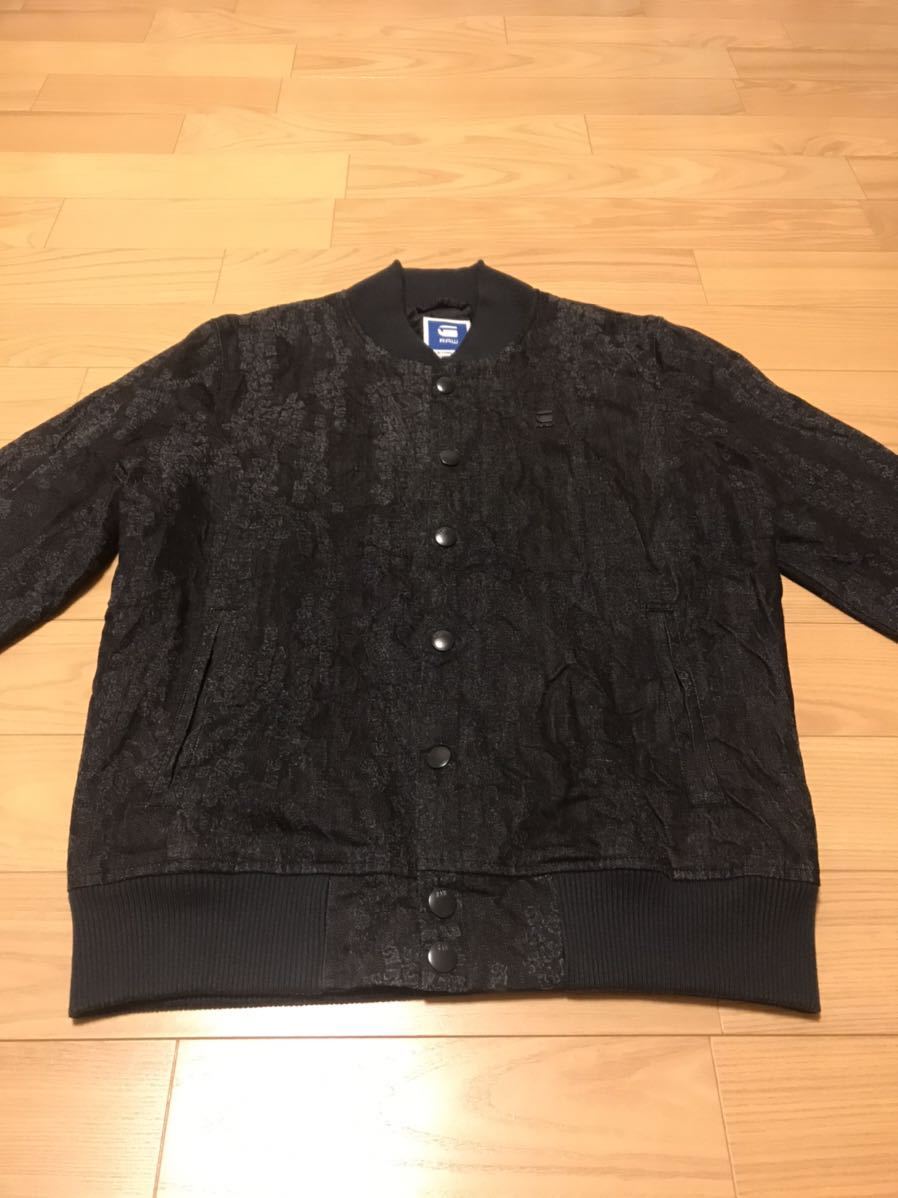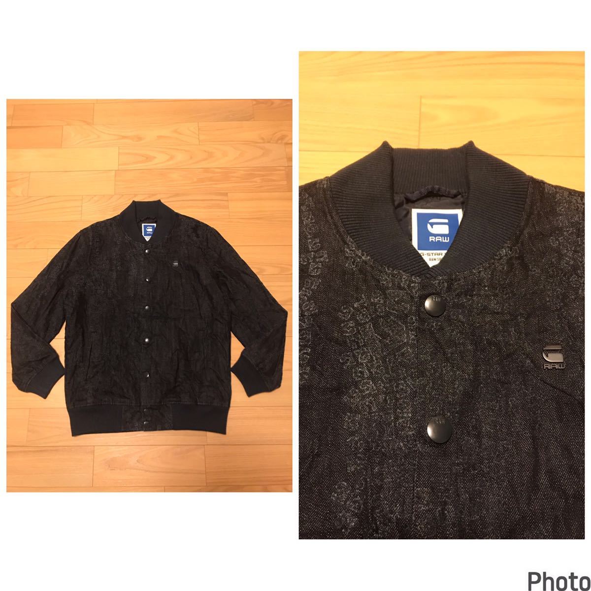 良品☆G-STAR RAW/ジースター SPORTS L 織り総柄入薄手デニム生地・MA-1スタジャン型ブルゾン ロゴプレート付!&スナップボタン インディゴ