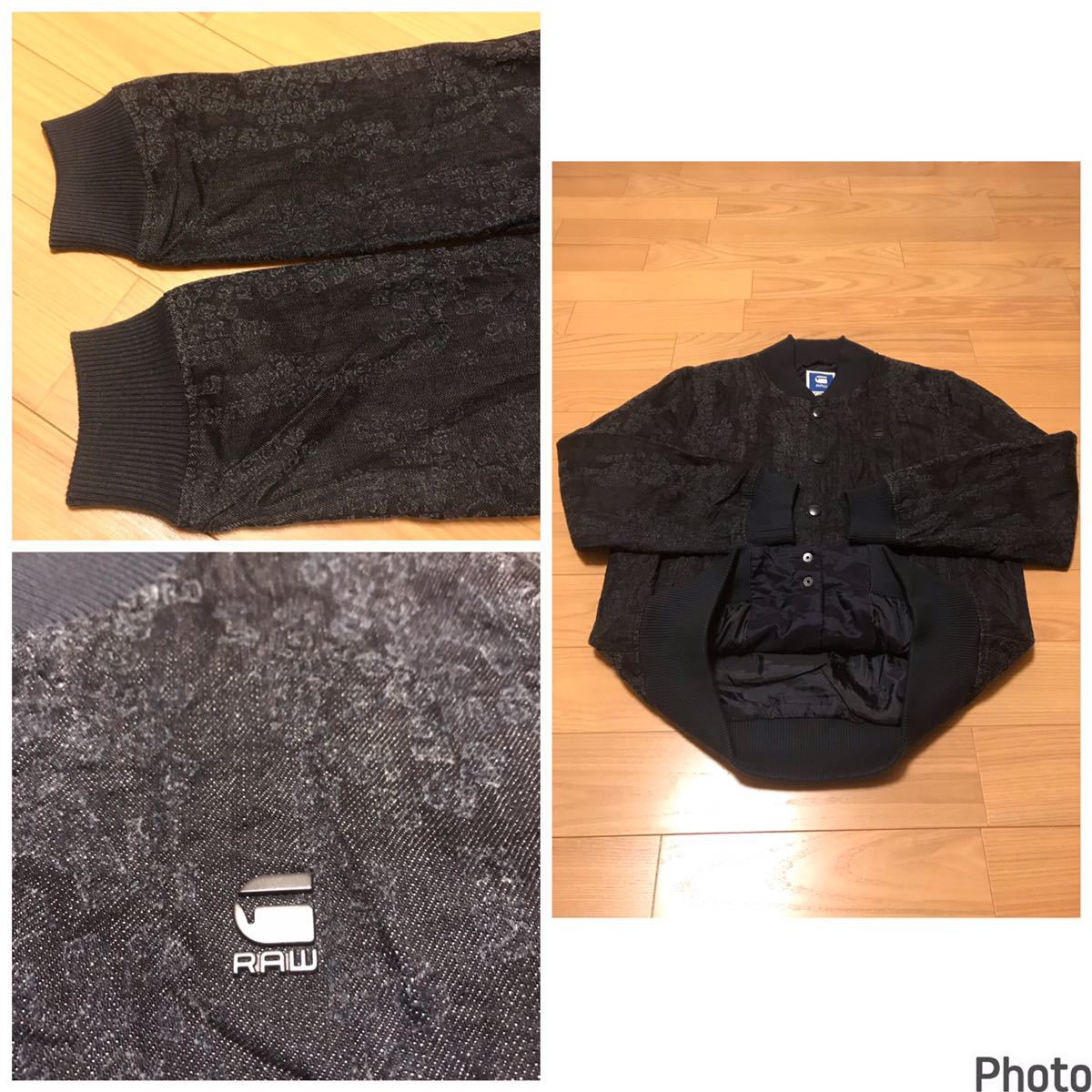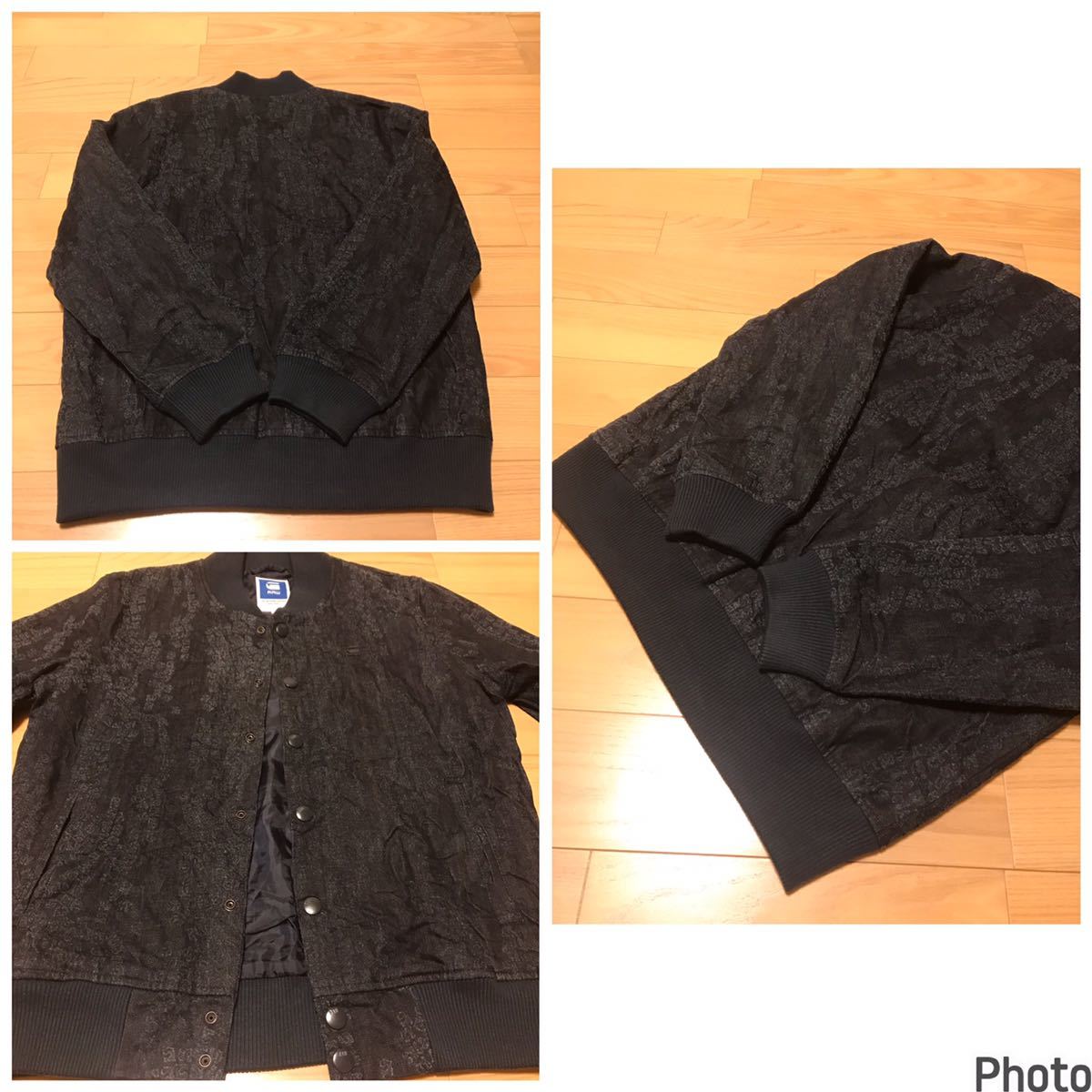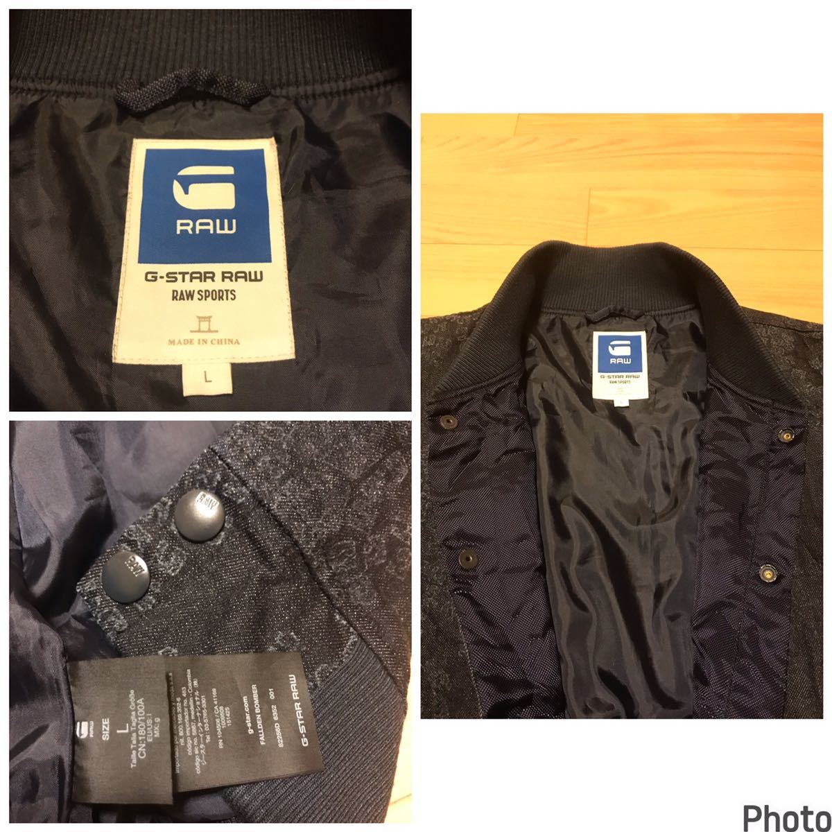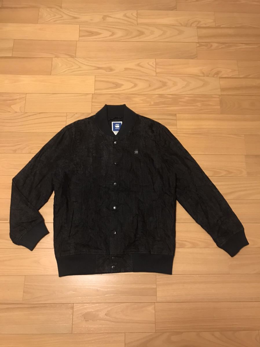 良品☆G-STAR RAW/ジースター SPORTS L 織り総柄入薄手デニム生地・MA-1スタジャン型ブルゾン ロゴプレート付!&スナップボタン インディゴ