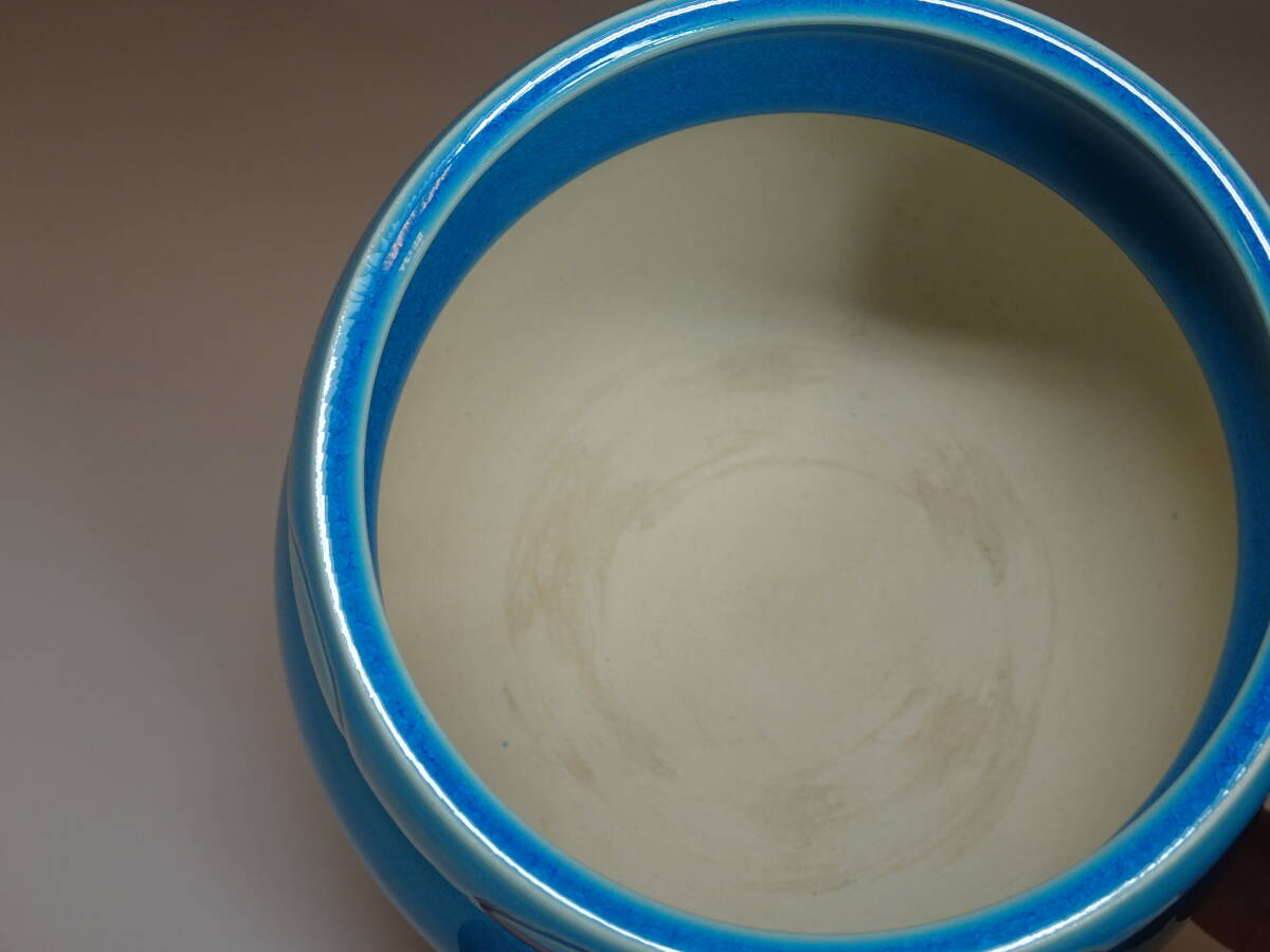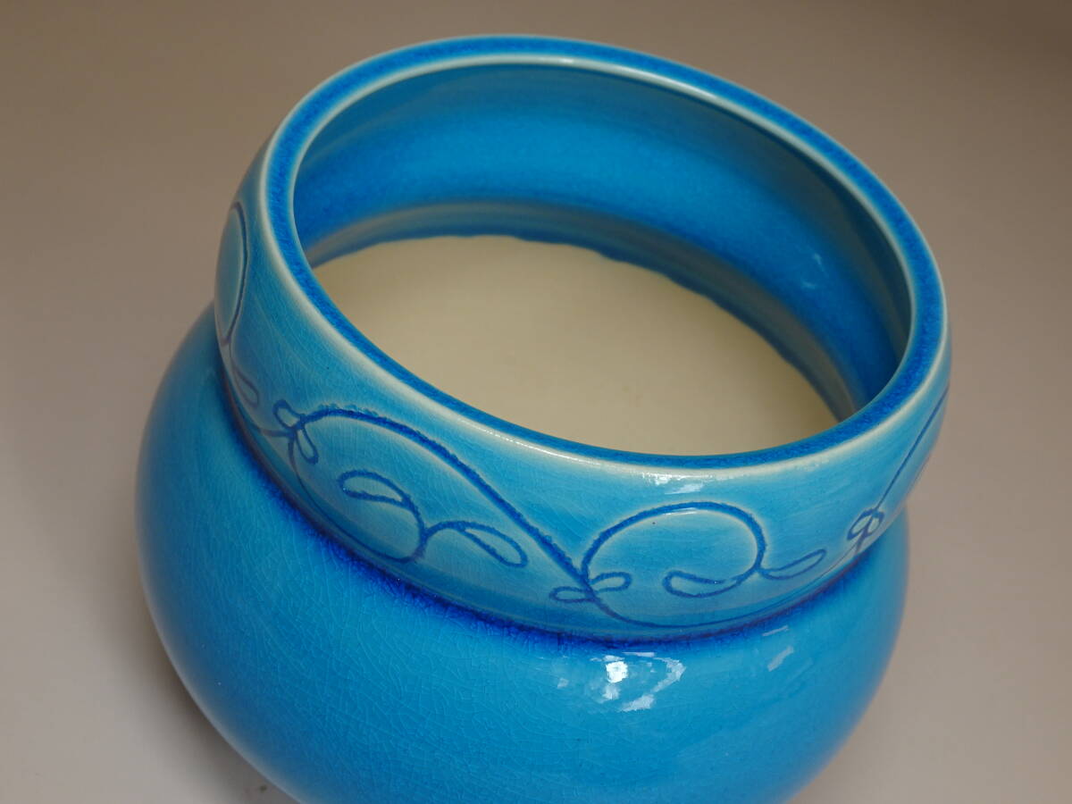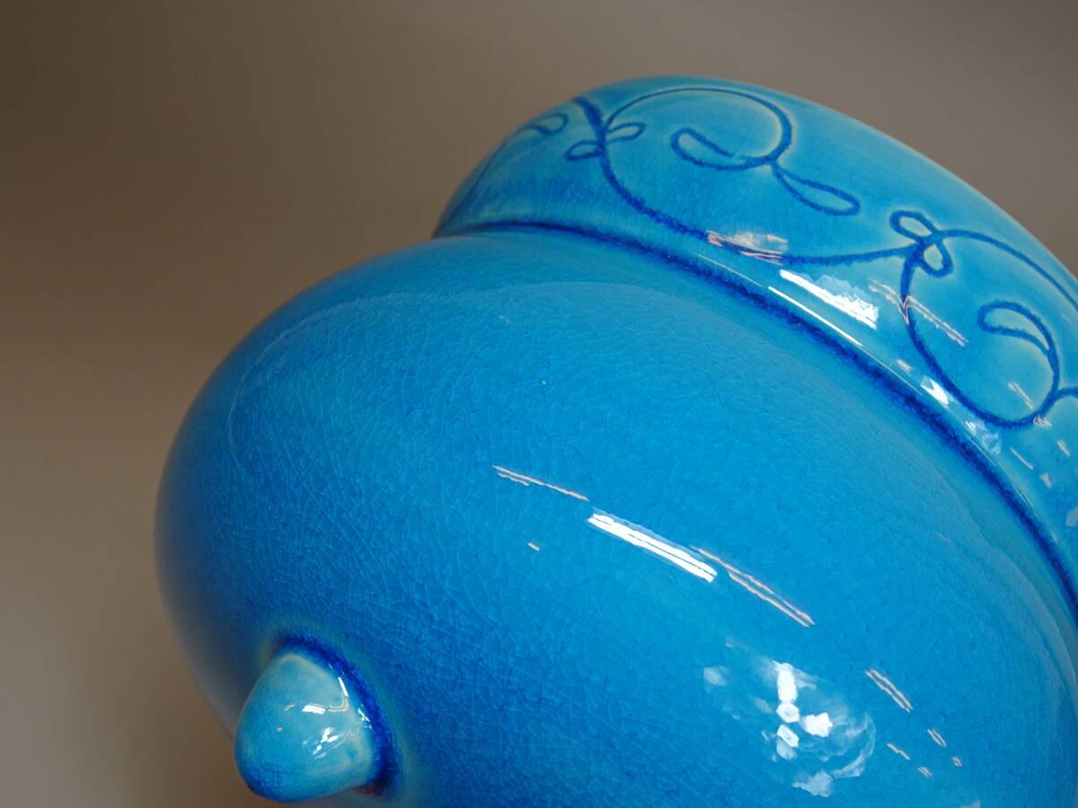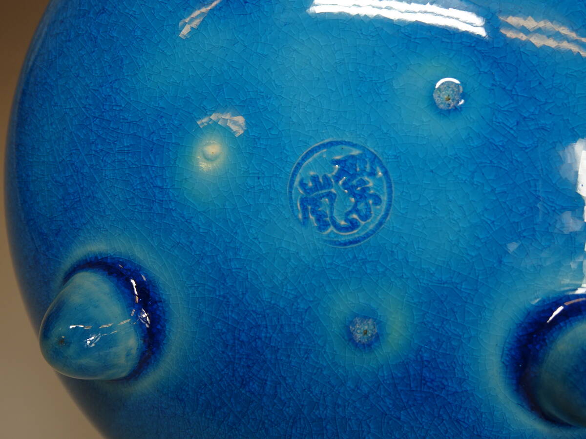 【涼風庵】中村翠嵐 作 浅黄交趾唐草火入 瓢形 三つ足 美品 茶道具 | |||