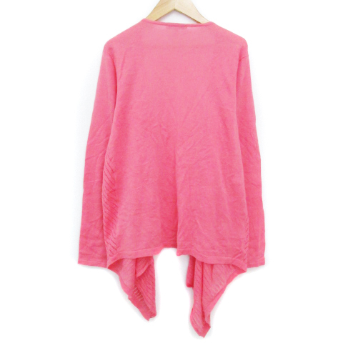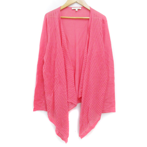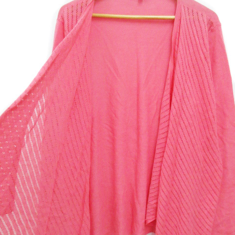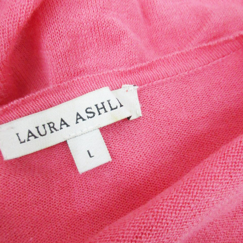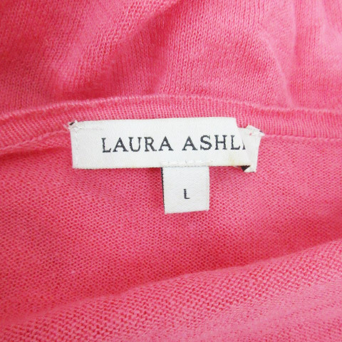 ローラアシュレイ LAURA ASHLEY ニットカーディガン ミドル丈 前開き 麻 リネン L ピンク /FF2 レディース