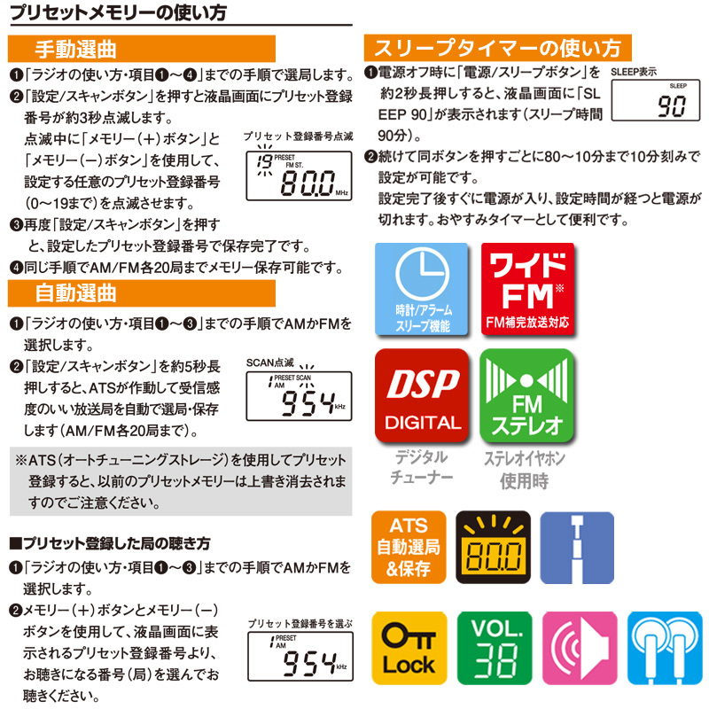 ● AM/FM各20局を自動でメモリーできる自動選局&保存機能付