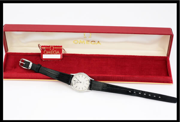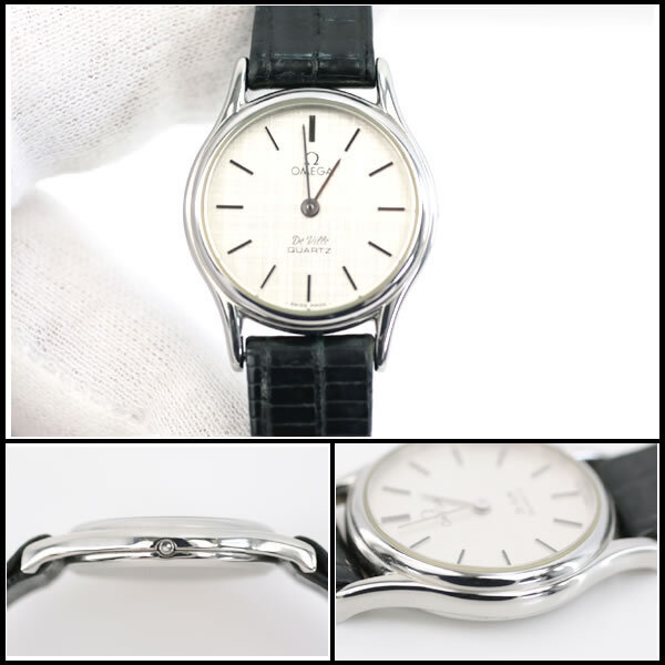 その他商品説明 | スイスの高級時計メーカーとして長い歴史と信頼あるオメガから、大変珍しいプッシュ式リューズ仕様の「デビル」をご紹介します。当商品はオメガを代表する人気のドレスウォッチ「デビル」のレディースモデルであり、品のあるシルバーカラーの(ケース×ダイヤル)にブラックレザーベルトが絶妙にマッチしたモデルです。また、当品は市場流通の極めて少ないプッシュ式リューズ仕様となっており、大変希少です。この機会に是非ご検討下さい。 状態:本体と尾錠部分に若干の微細な小傷はありますが、いずれも目立つものではありません。レザーベルトに多少の使用跡・小傷等がありますが、現状において今後まだまだお使いいただけます。ガラスのカケ・傷等はありません。ランクAにつき自信を持ってお勧めします。 |