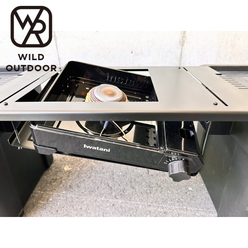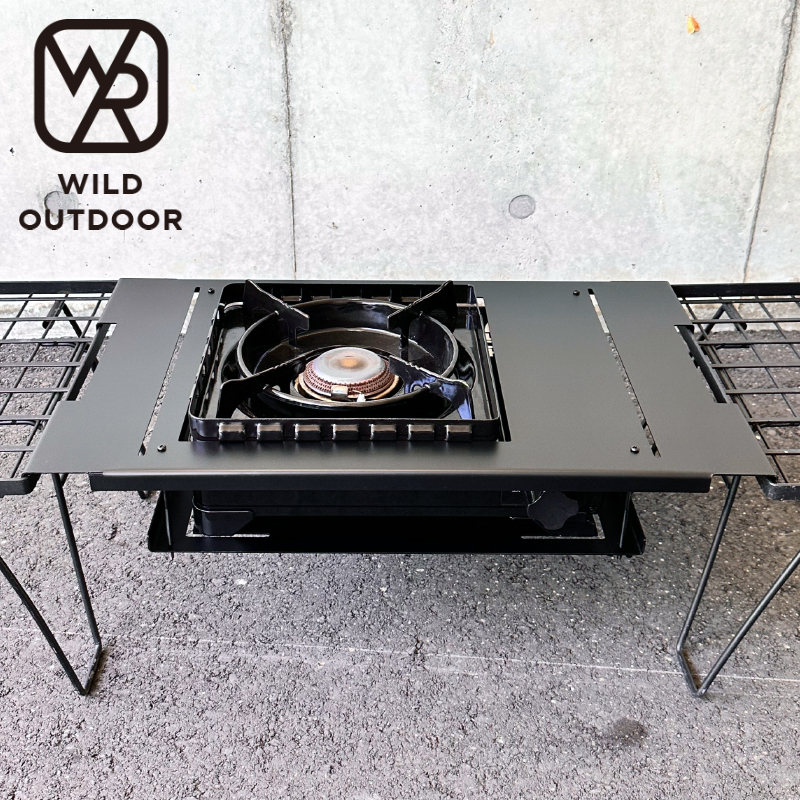 | 【秒で完売した新たな傑作】 大人気の「タフまる/おさまる」シリーズから 待望のフィールドラックにタフまるジュニアのどちらかをインストール出来る天板が新登場。 タフまるインストールのパイオニアとして 積み重ねてきた知識をここに。 汎用性と利便性。そしてコストまでこだわった一品です。 言わずと知れたフィールドラックにタフまるをインストール出来る天板です。 ラック同士の間にブリッジ天板としてお使いいただけます。 タフまるを使わない時はアンダーパネルを裏返して天板に被せるとアイアンテーブルに早変わり。 テーブルセンターにはゴールゼロをドッキング。 吊り下げネジだけの簡単設営。地面の不陸もネジで調整すれば何時でも水平に保つ事が可能。 収納はラックにおさめてから一緒にケースへ。 THOR BOXと汎用性あり。 引っかけるだけなのでサイズが合えばどんなものでもインストールできちゃう優れもの。 当店では多数のアウトドア用品をご用意しております。是非ご覧いいただきご検討お願いいたします。 商品仕様 ブランド:WILD OUTDOOR おさまるぶりっじ 天板 横570mm×縦336mm アンダーパネル 横405mm×縦298mm 材質 鉄 ※個体差によりアイアンを曲げる際、掴みしろの爪傷がつく場合がございます。ご理解の程よろしくお願い致します。 塗装 艶消しブラック ※使用に伴い塗装がはがれる場合がございます。 艶消しスプレーなどで上塗りをお願い致します。 ■組み立て方■ ①メイン天板とアンダーパネルを裏側同士合わせる。 ②付属のネジで3箇所を先にとめておく。 ③アンダーパネルをずらしてタフまるを下から挿入(写真ラストの様に) ※この時タフまるの五徳部は一旦外しておく。 ④最後のネジを締めて水平をとる。 ⑤タフまる五徳を乗せて完成。 ※本商品にはタフまるはついておりません。 別途お買い求め下さい。 | |||