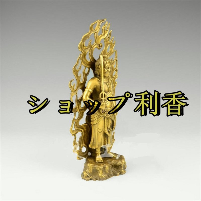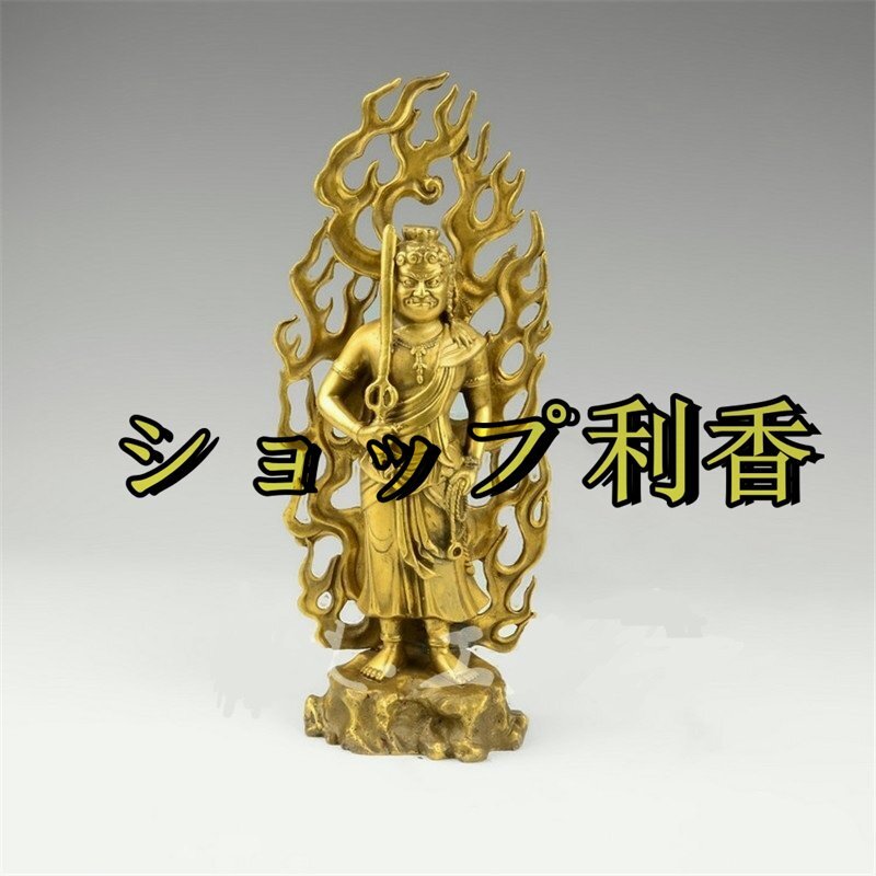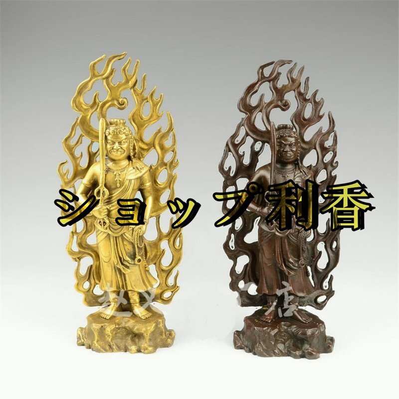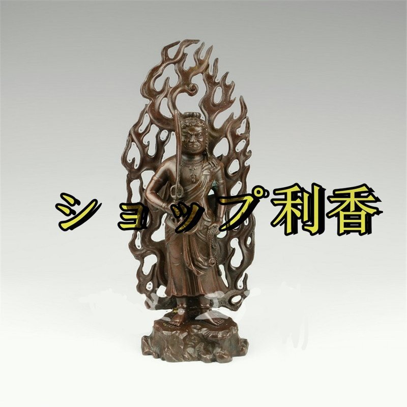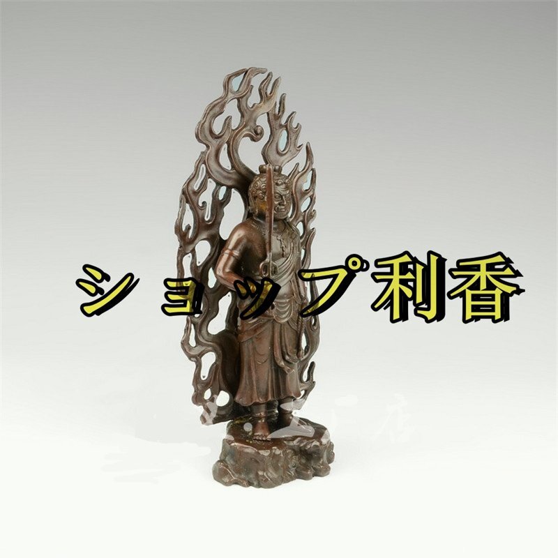 仏教美術 不動明王 純銅製(酉年生まれ)十二支守り本尊・赤銅色 開運出世 開運厄除 災難除去・総高28cm