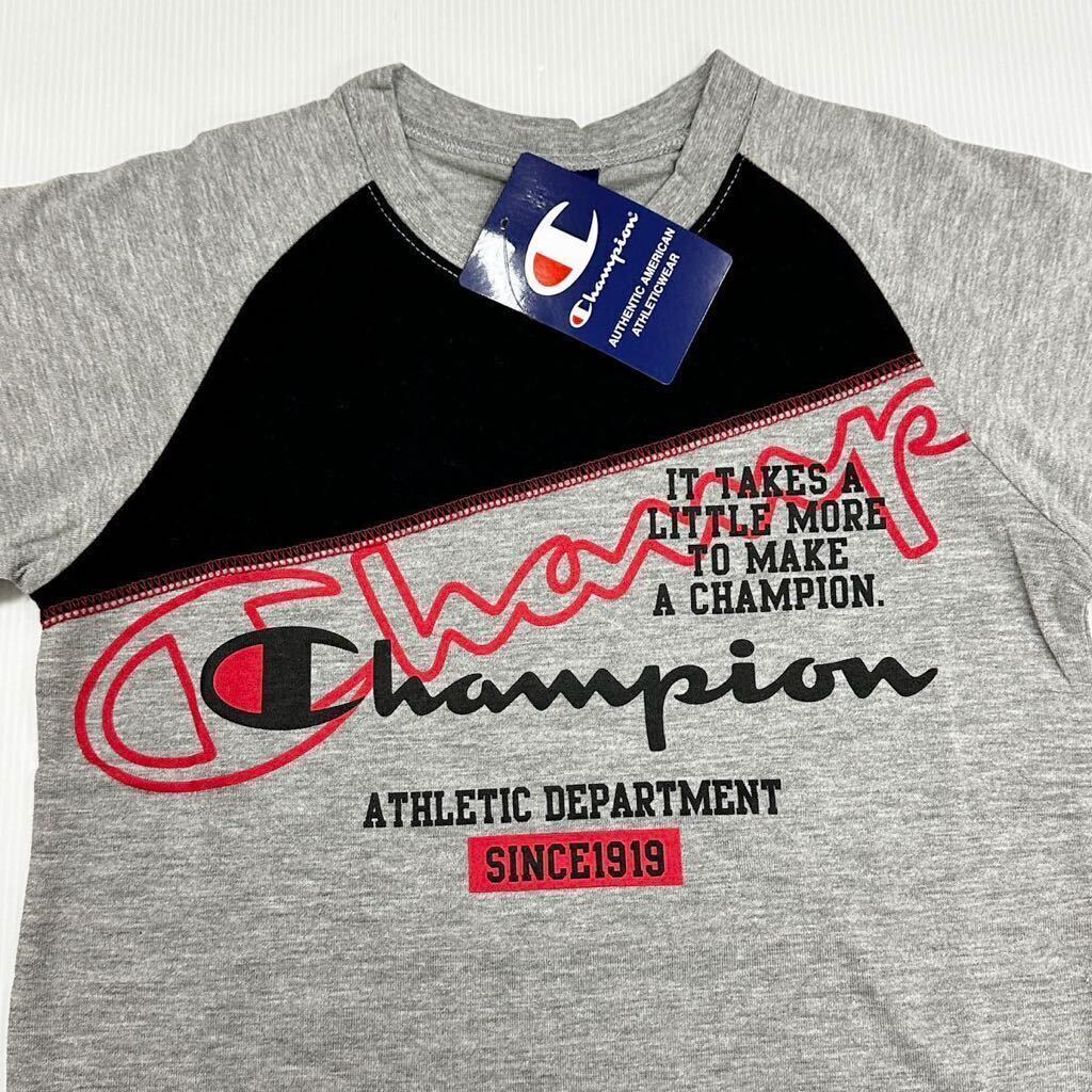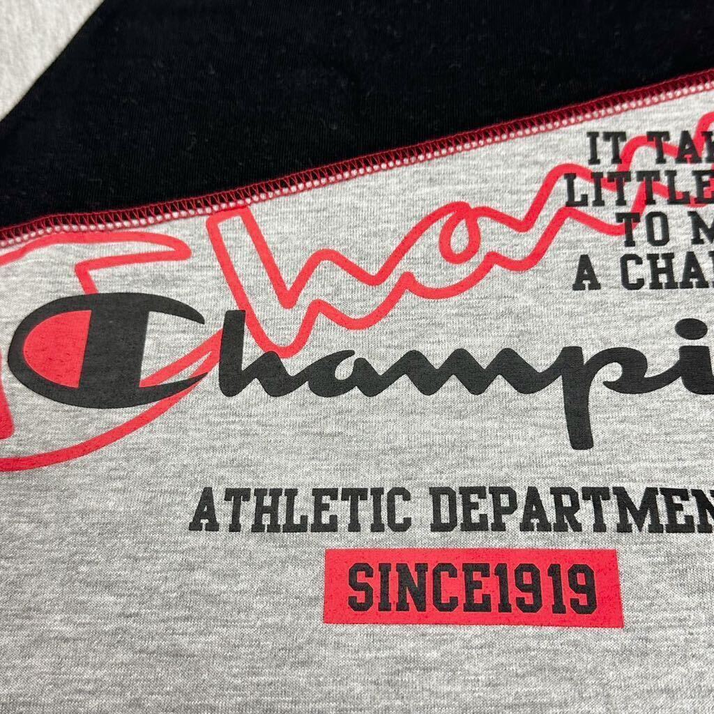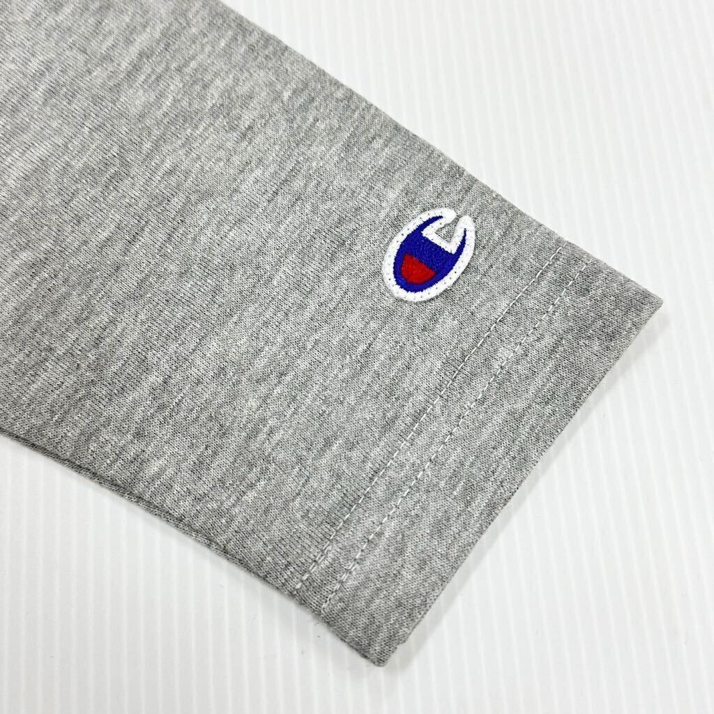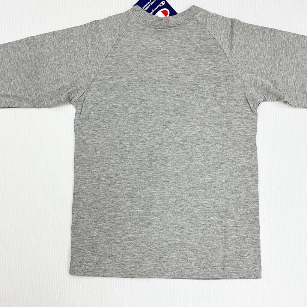 新品18649 Championチャンピオン150cm グレーブラック配色 長袖Tシャツ 胸プリントロゴ丸首Tシャツ オールシーズンキッズ ジュニア ロンT