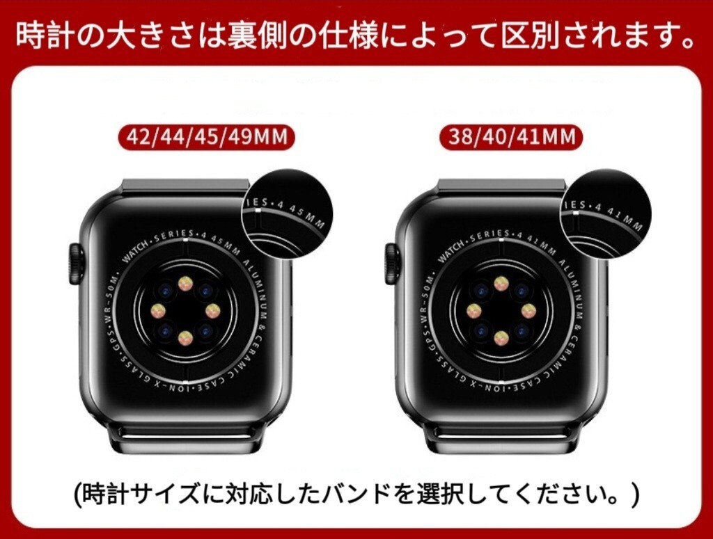 【対応機種】AppleWatch SE、9/8/7/6/5/4/3/2/1、Ultra2/1の全機種に対応。 すべてのシリーズの時計38mm / 40mm / 41mm適合します。