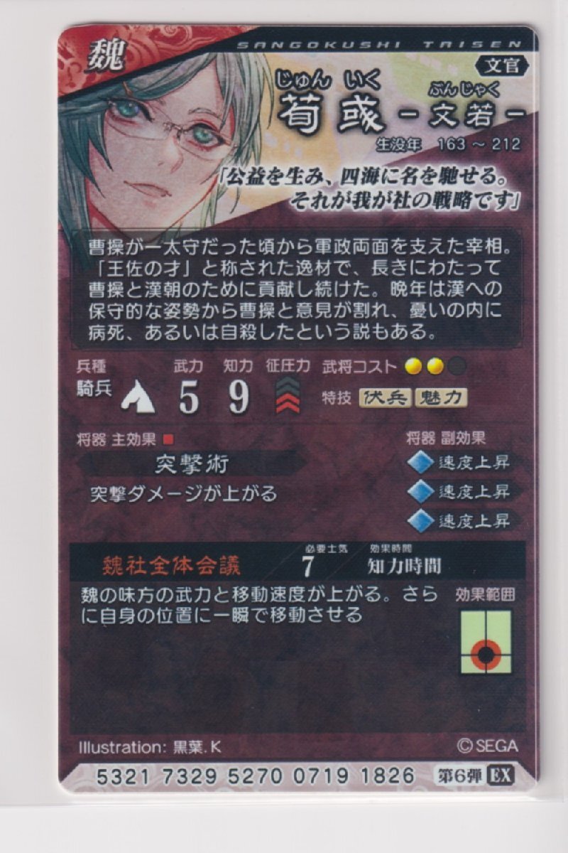 三国志大戦6 魏 6弾 EX (SR) 荀〓 魏社全体会議 突撃力上昇 コレクション用 b