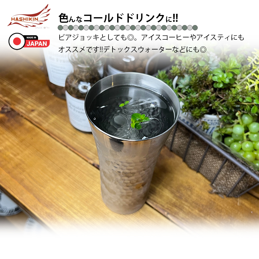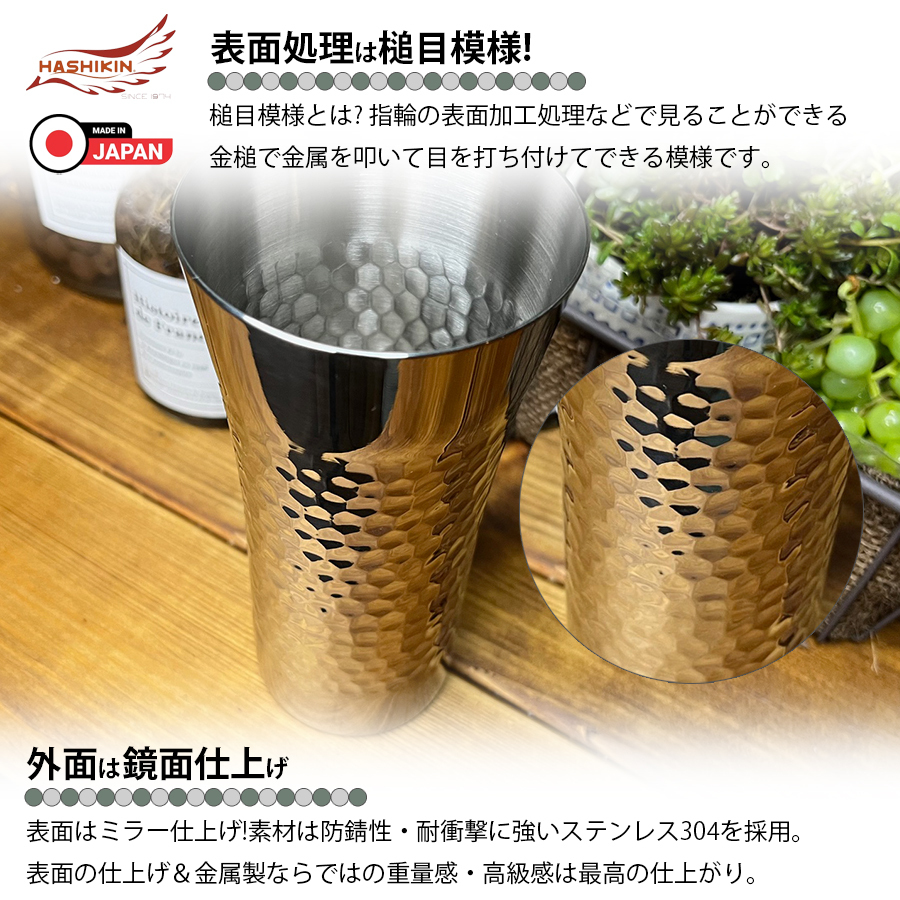 日本製 ステンレス タンブラー 槌目 ミラー 350cc ビール ビアグラス ハイボール カップ コップ ステンレス製 橋本金属 HK-1 区分60Y