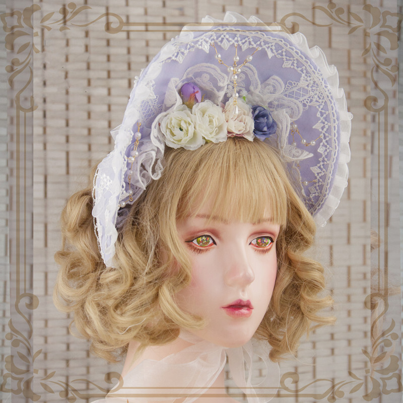 ロリータ ボンネット ボンネ 帽子 ヘッドドレス アクセサリー フラワー 薔薇 花 小物 クラシカル クラロリ 甘ロリ ゴスロリ 可愛い ゆめかわいい カチューシャ レース フリル プリンセス ウエディング 華やか エレガント レディース Lolita ロリータファッション ロリィタ bnt お茶会 ティーパーティー おしゃれ ラベンダー