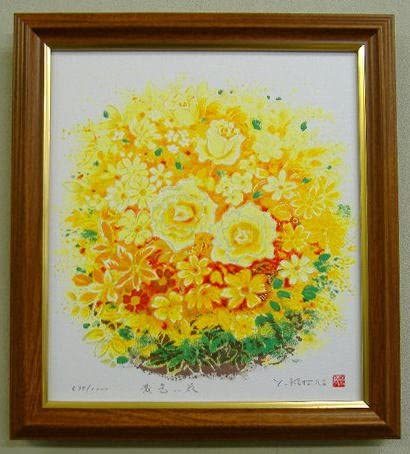 新品 風水絵画 黄色い花 金運 開運 絵 絵画 花の絵 額装付き