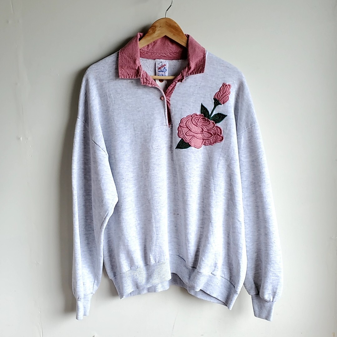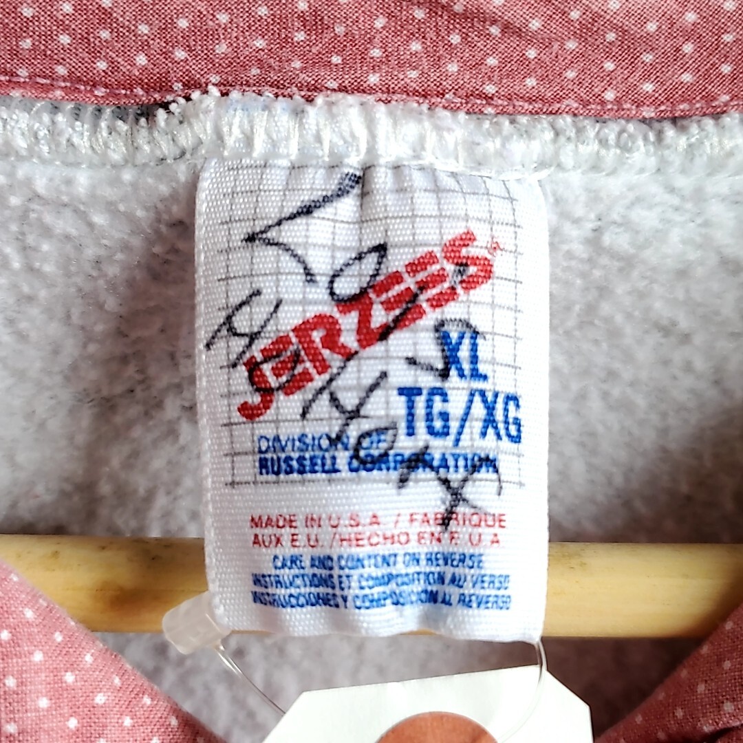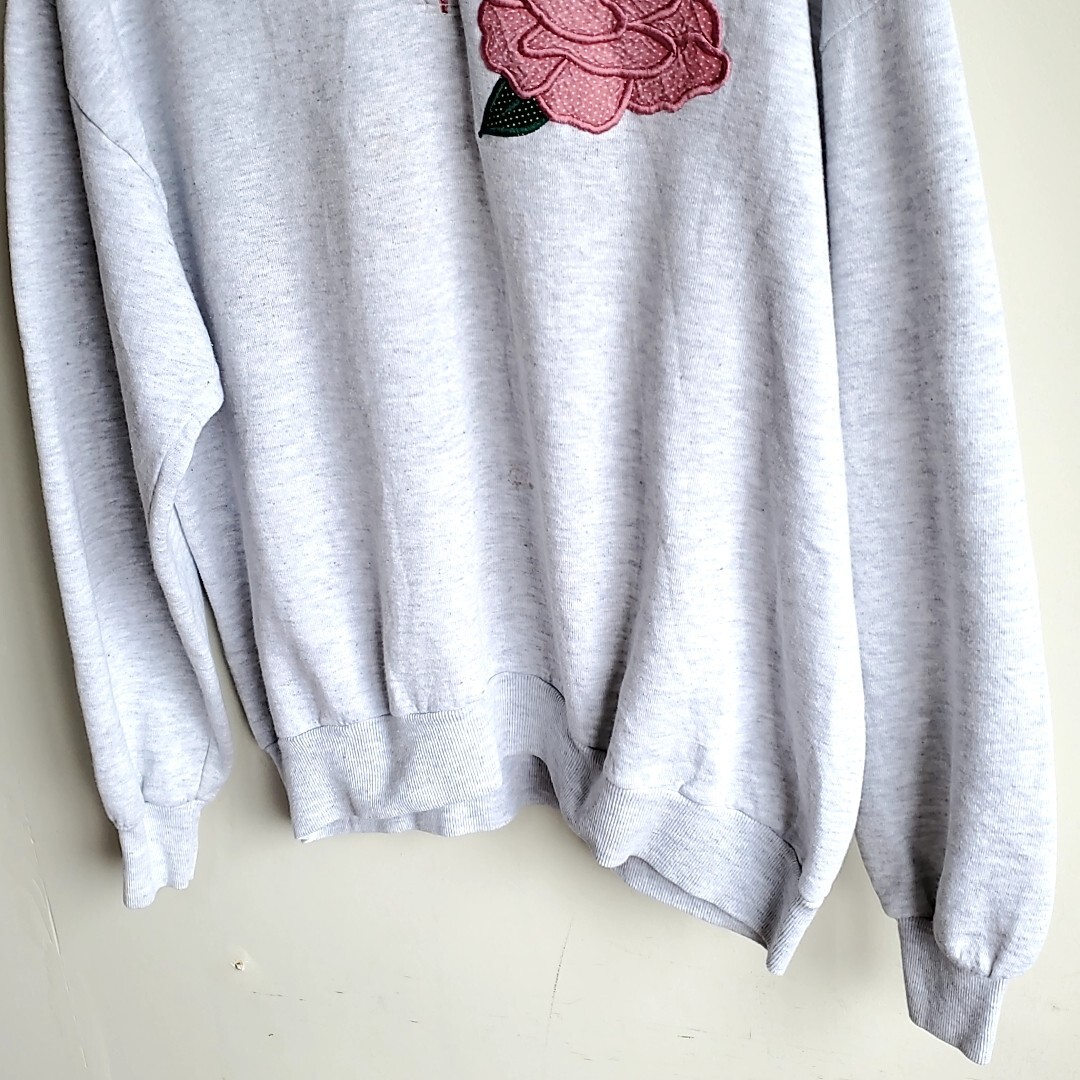 C20◆USA製 80s JERZEES 衿付け スウェット sizeXL グレー 灰色 トレーナー 花柄 ハート 中古 USED 古着 vintage ヴィンテージ