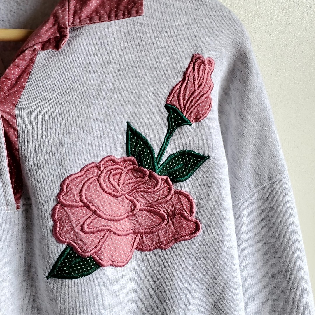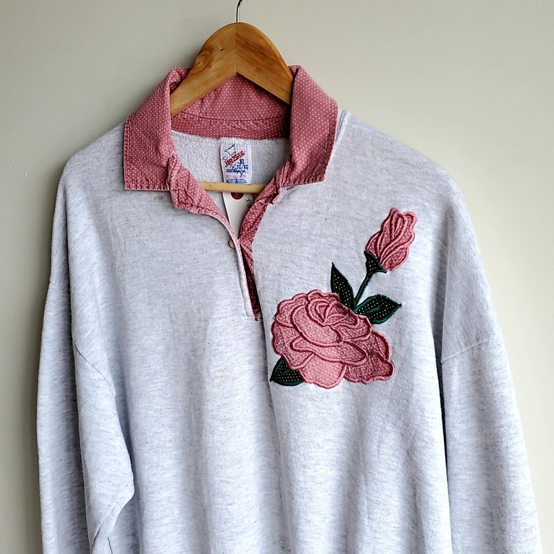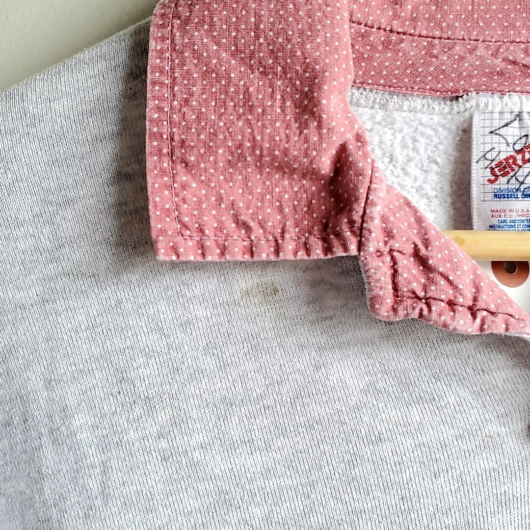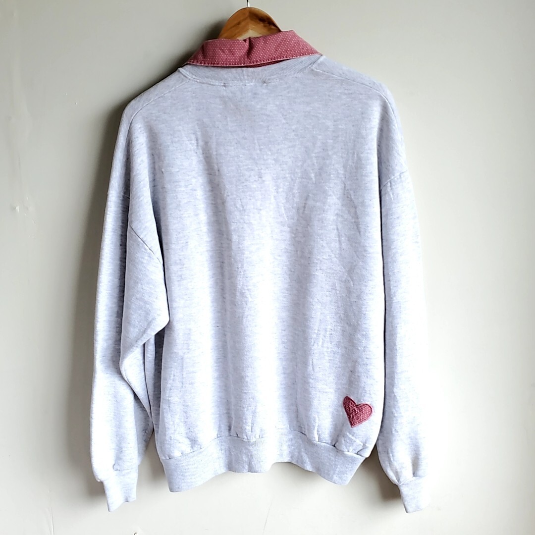 C20◆USA製 80s JERZEES 衿付け スウェット sizeXL グレー 灰色 トレーナー 花柄 ハート 中古 USED 古着 vintage ヴィンテージ