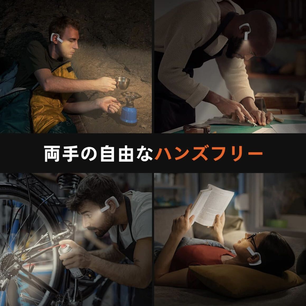 [着心地&デザイン] 耳にピッタリ固定されていて動いても落ちません。両耳のどっちにも着用でき、モダンでエルゴノミクスデザインで着心地がよくなり、着用による疲れは感じられません。こちらのブランドストアーでTwo-way mini flashlightの着用方法動画をご確認ください。