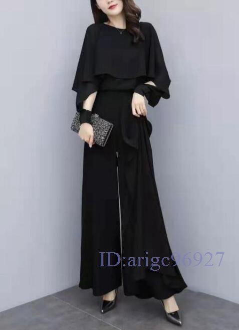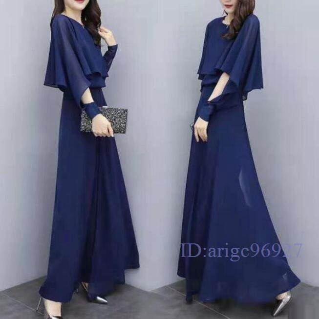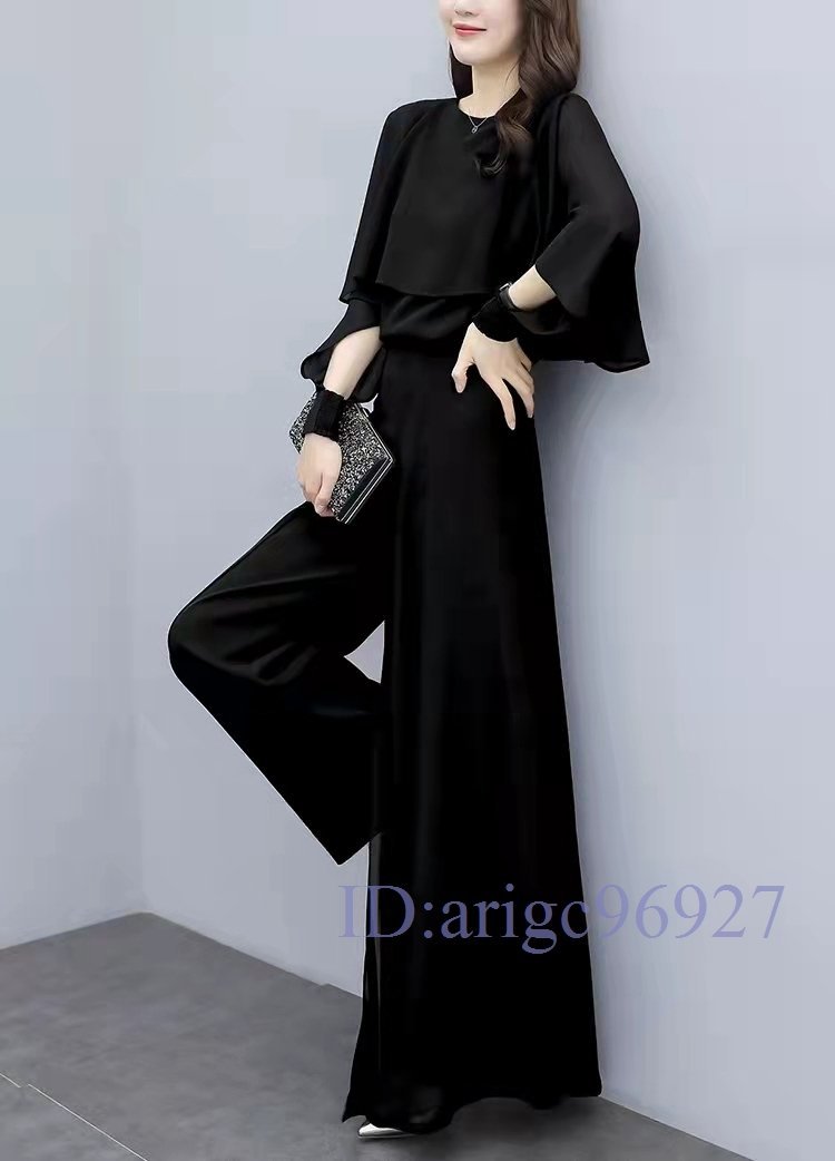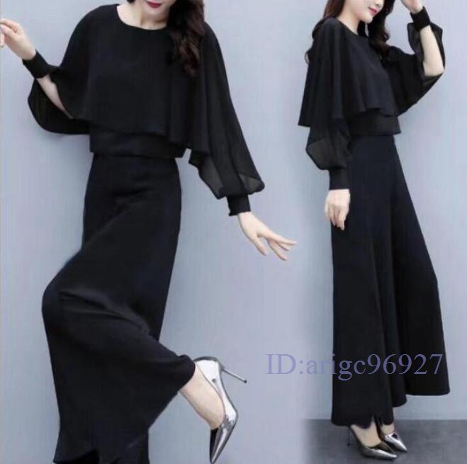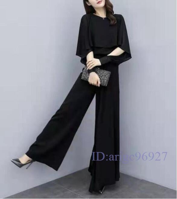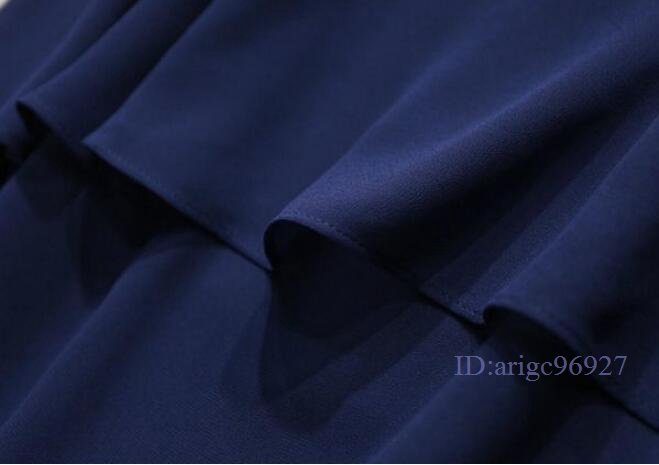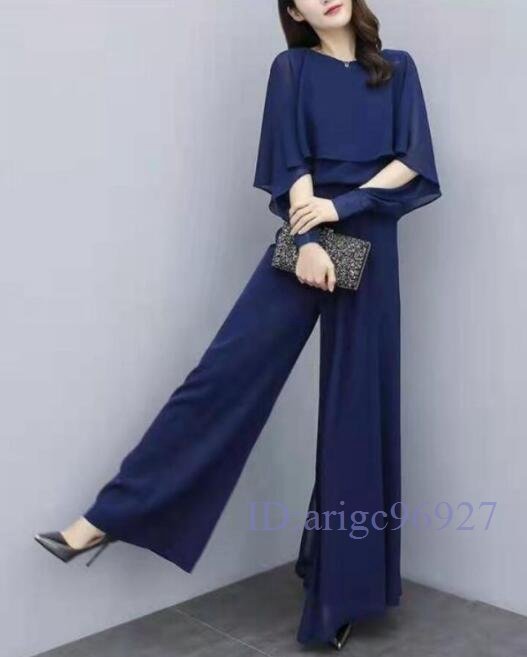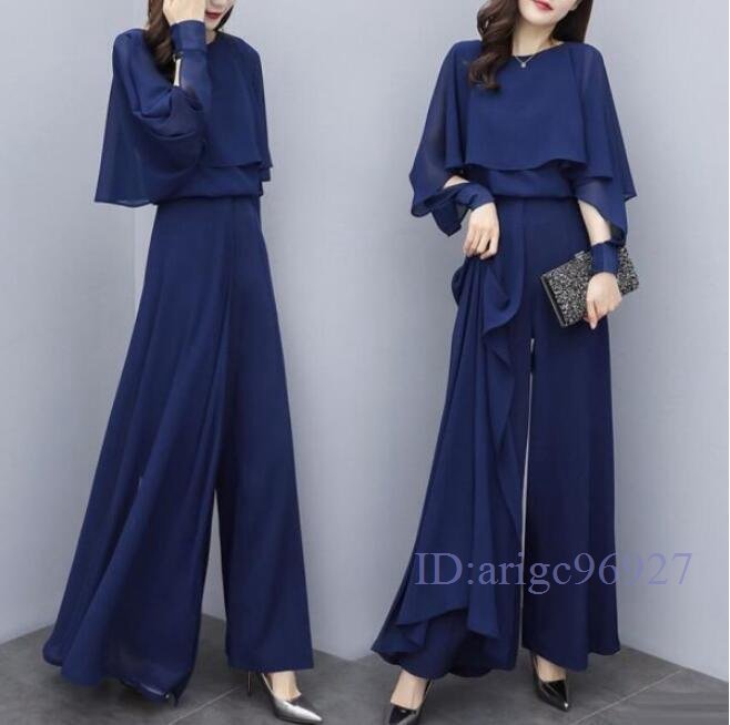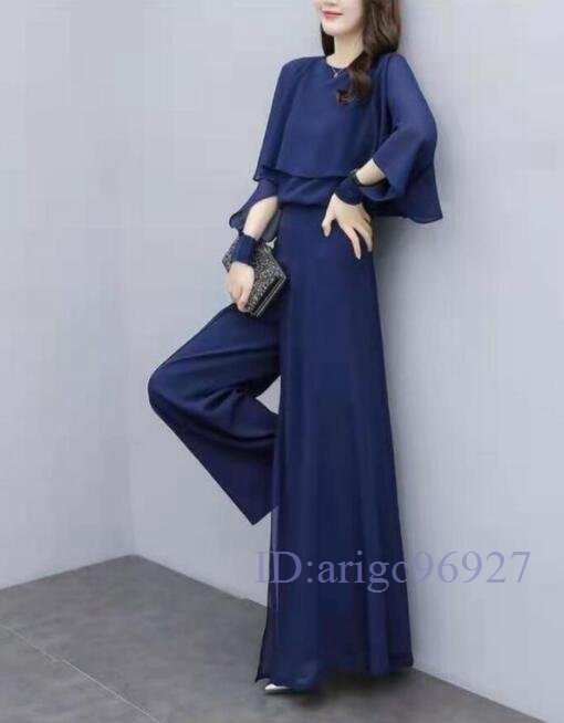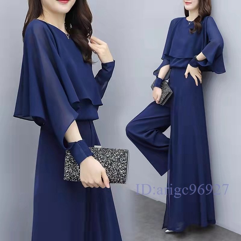 Q701☆新品S-3XLサイズ?レディース上下パンツスーツ無地オシャレシフォンドレスオフィスセットアップ通勤大人フォーマルAライン*ネイビー