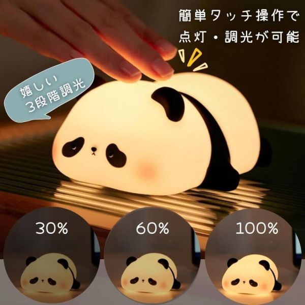 OTD ベッドサイドランプ ナイトライト 間接照明 電気スタンド 常夜灯 デスクライト スタンドライト タッチ式USB充電【パンダ型】