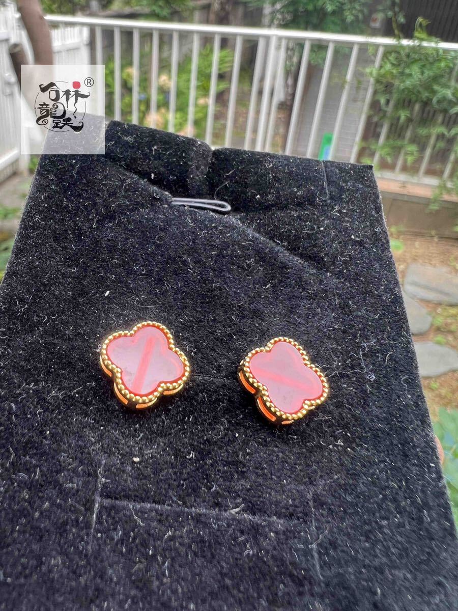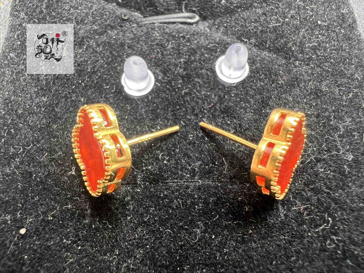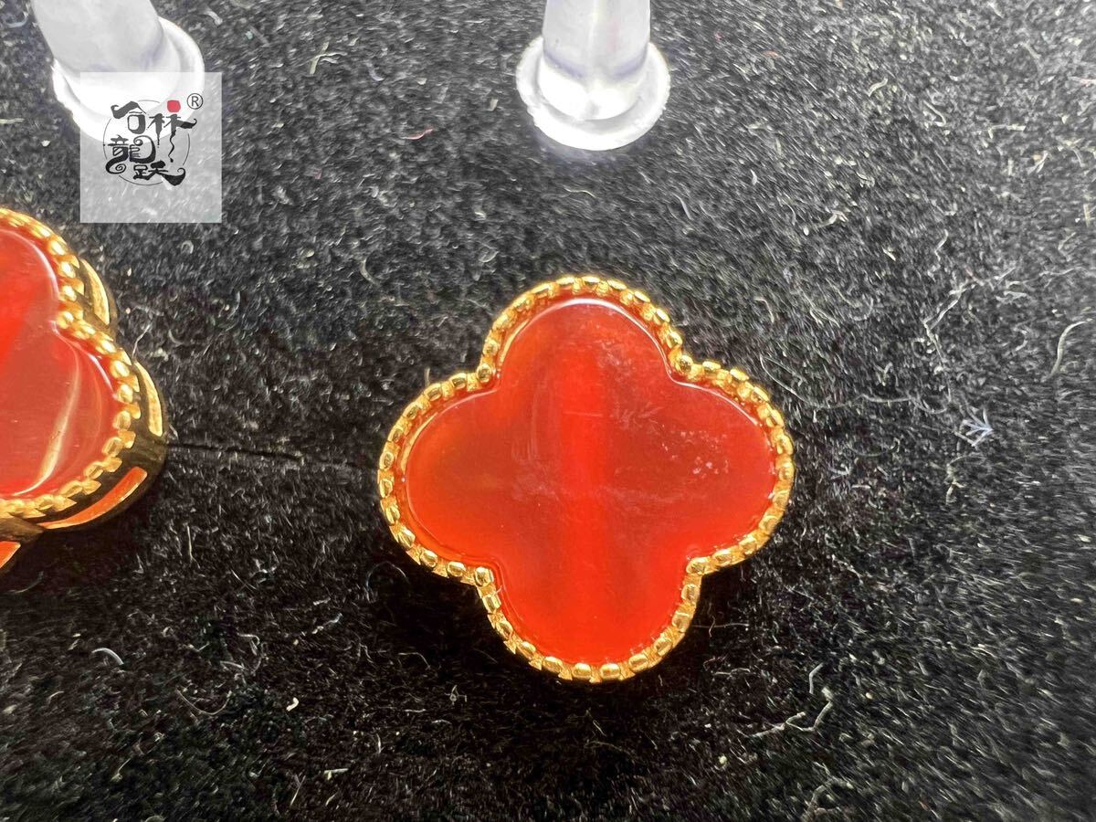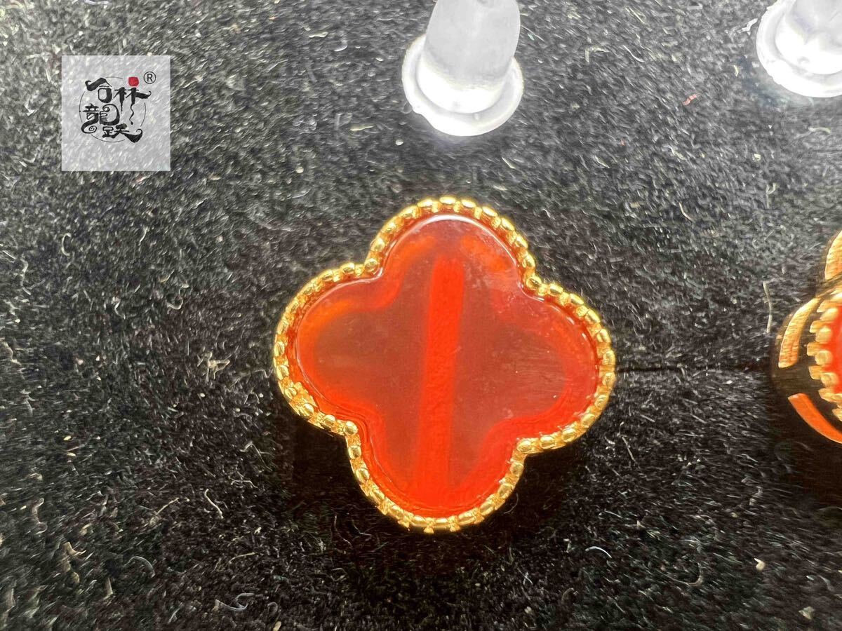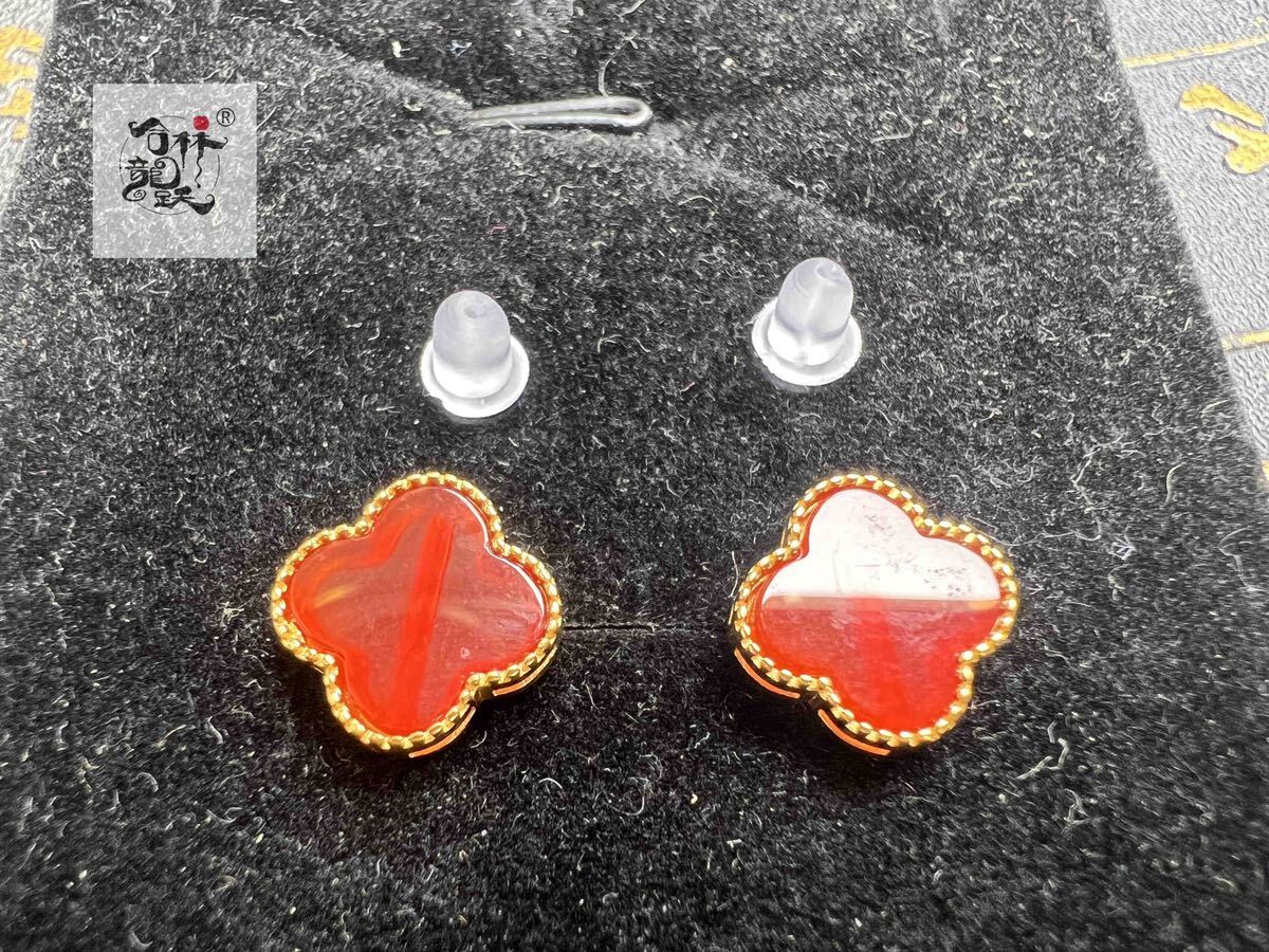 商品名:天然美しい 四つ葉のクローバー S925銀針瑪瑙 ピアス