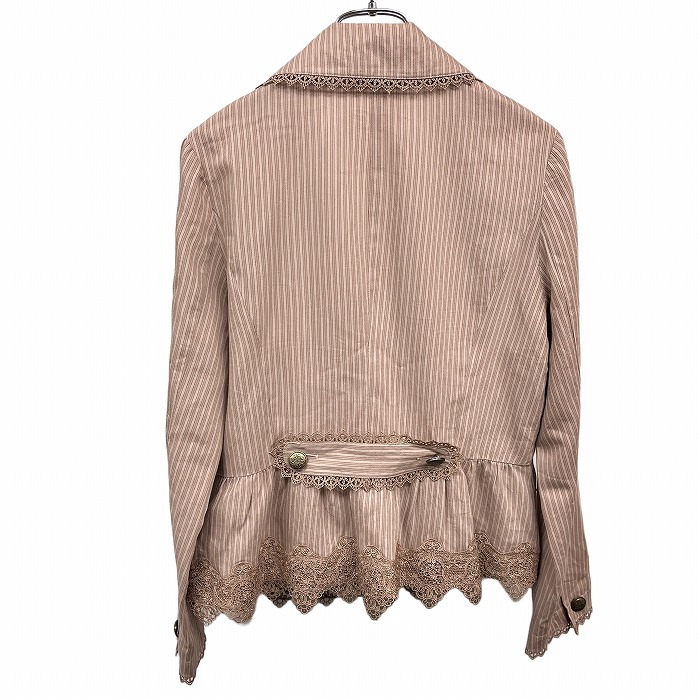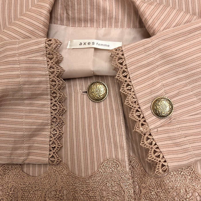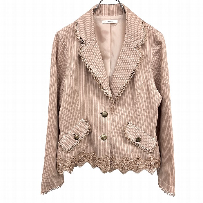 | 商品タイトル | アクシーズファム 薄手 テーラードジャケット シャツ生地 ストライプ 総裏地 レーススカラップ 綿100% M ベイクドピンク レディース |