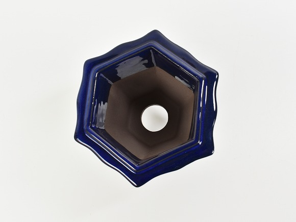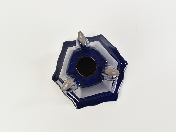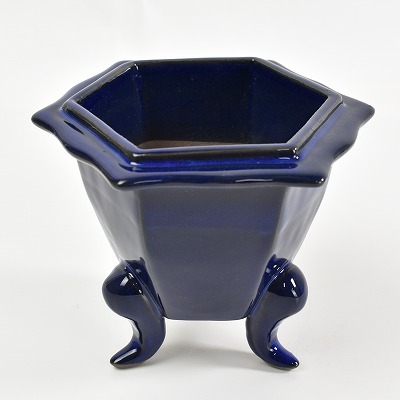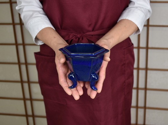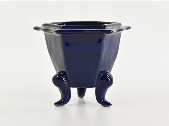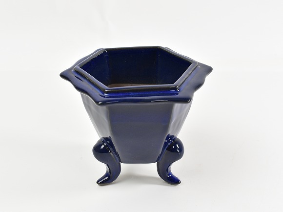 ツヤありのきれいな生子色です。 生子4号 六角三ツ足 幅13cm ×高11cm