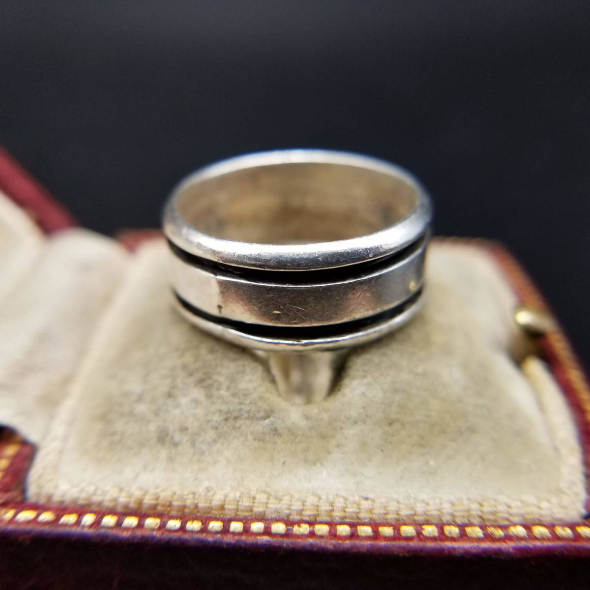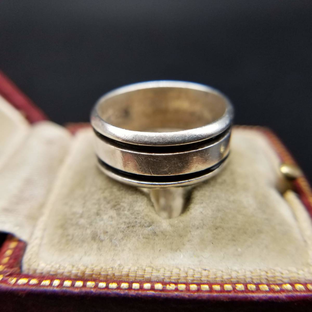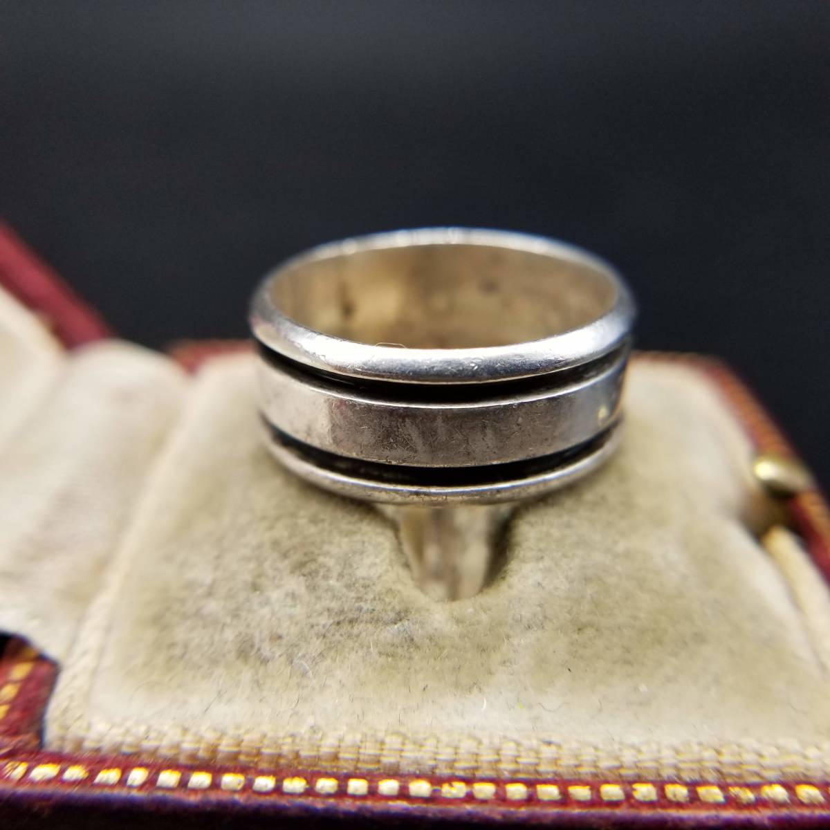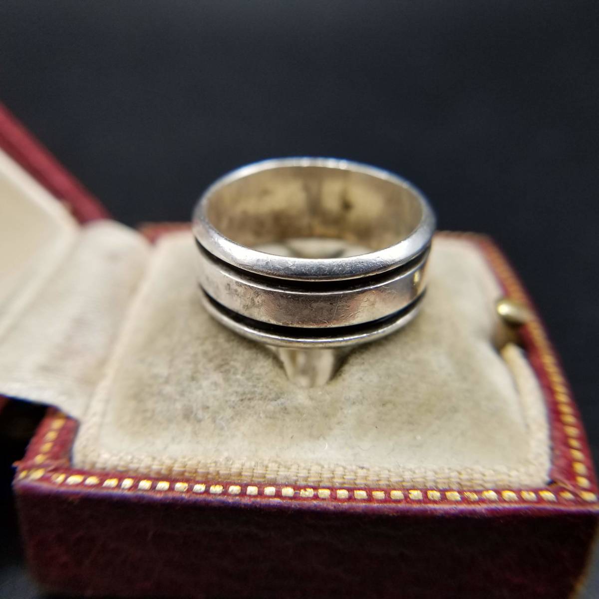 シンプル ボーダー 2本線 925 シルバー ヴィンテージ バンドリング 中太 アールデコ 銀 ユニセックス 日常使い デイリー YDH②13