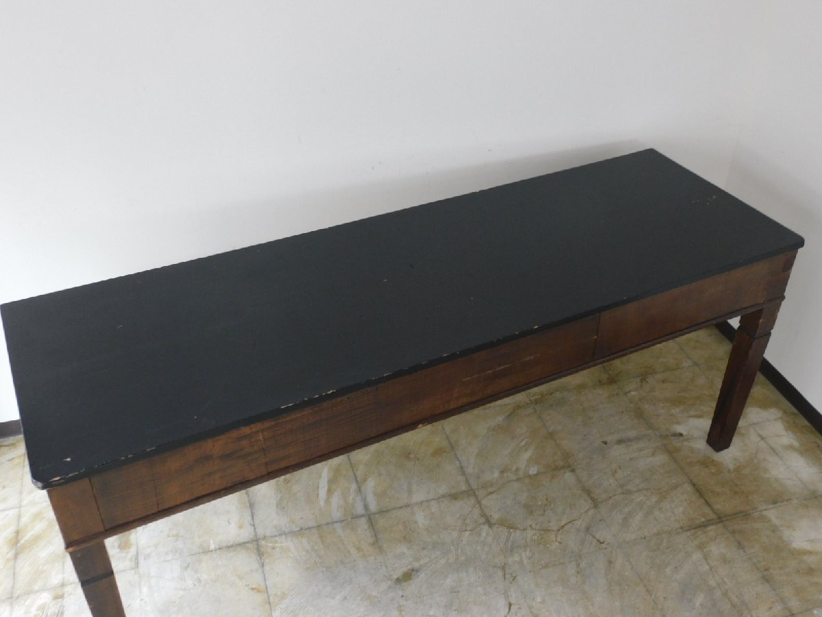めずらしく横に広い天板に、すっきりとした意匠の脚部。