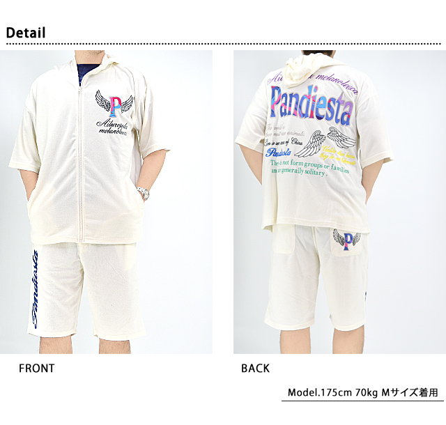 和柄ブランド【錦】の姉妹ブランドとして誕生した、お茶目なパンダをモチーフとした【PANDIESTA JAPAN】より「Pandiestaロゴアップリケパーカー セットアップ(554561)」のご紹介です。 今や、錦の定番モチーフとなった「錦PANDA」!! パイル素材は吸汗性と通気性に優れた夏にオススメの素材で、タオル地の様な手触り感が着心地感抜群。 男女問わずスタイリングいただけます。 カラフルな色使いのブランドロゴが魅力的なデザイン。 プリントと刺繍を組み合わせ、夏にぴったりの一着を完成させました。 単品でのスタイリングはもちろんのこと、各々他のアイテムと組み合わせていただければ、コーディネートはお客様次第となります。 | ||||||||||||||||||||||||||||||||||||||||||||||||||