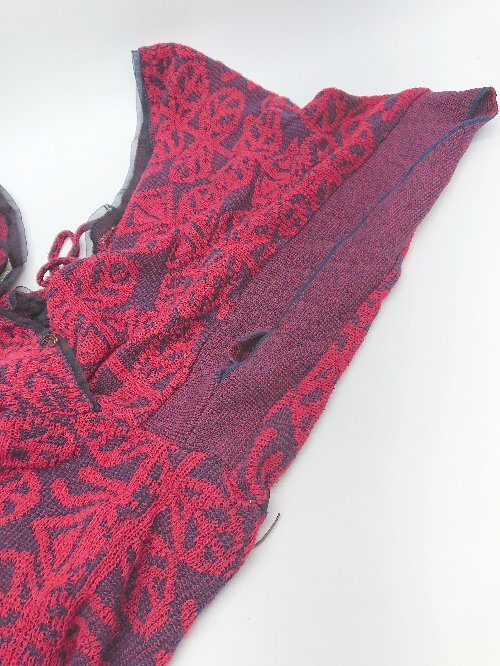 ◇ wafflish waffle ワッフリッシュワッフル カシュクール 半袖 ニット セーター レッド系 ネイビー レディース P