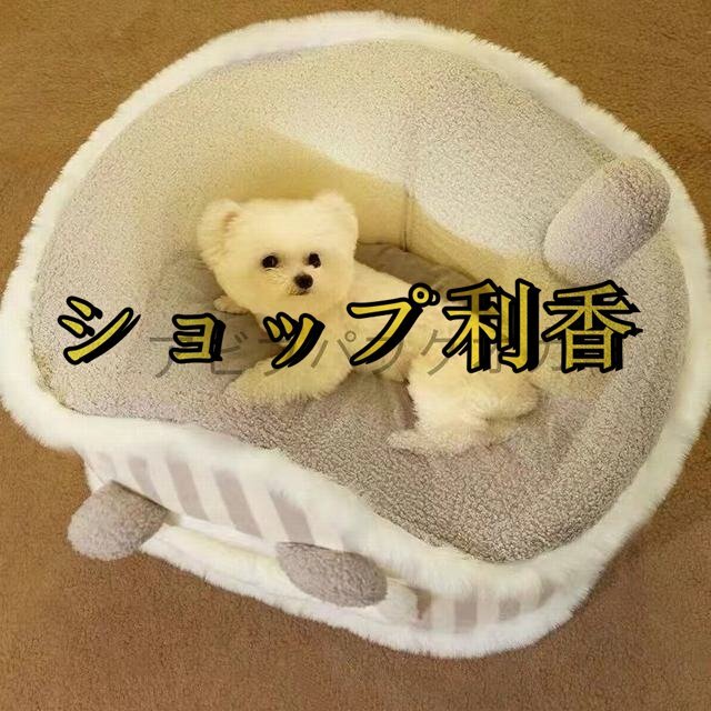 猫 犬 ベッド ペットベッド ふわふわ 暖か もこもこ ペット用品 ペットハウス 滑り止め クッション マット柔らかい 秋冬 グレー Lサイズ
