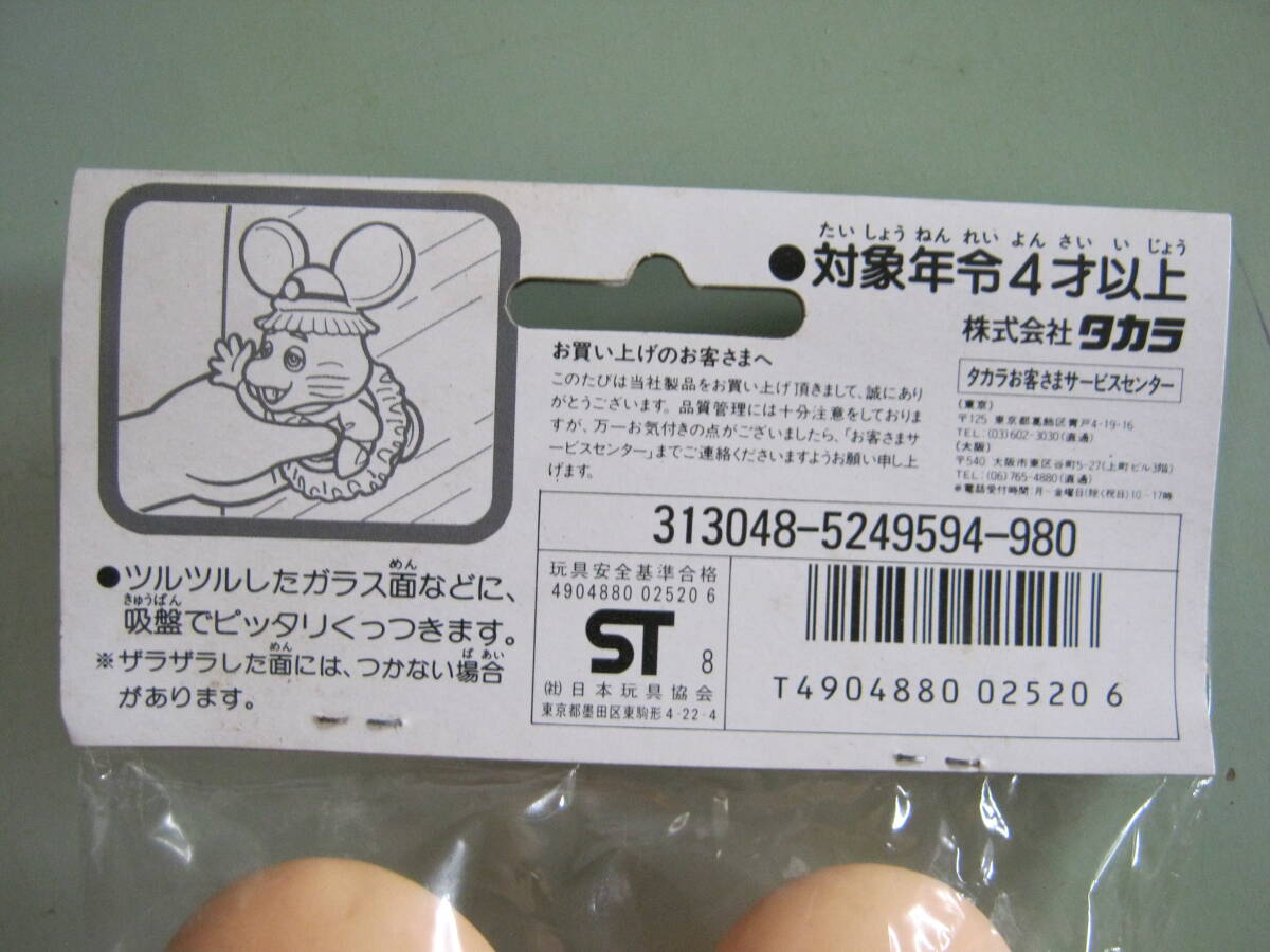 タカラ【トッポジージョのとつぜん工事チュー(吸盤付きソフビ人形)パッケージ入り 未開封】1988年②