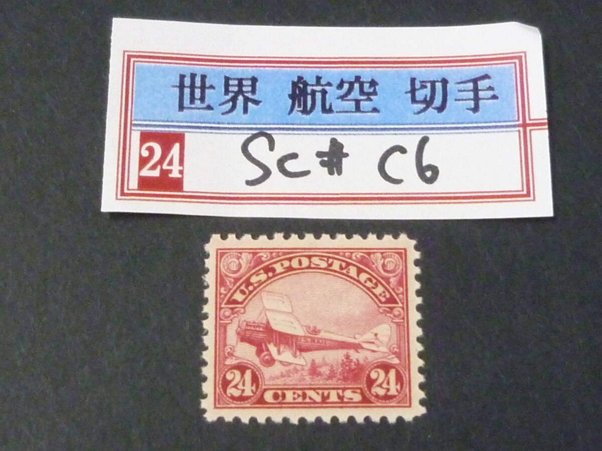 24 A №6 アメリカ切手 航空 1923年 SC#C6 デ・ハビランド機 24c 未使用NH・VF 【SC評価 $130】 ※説明欄必読