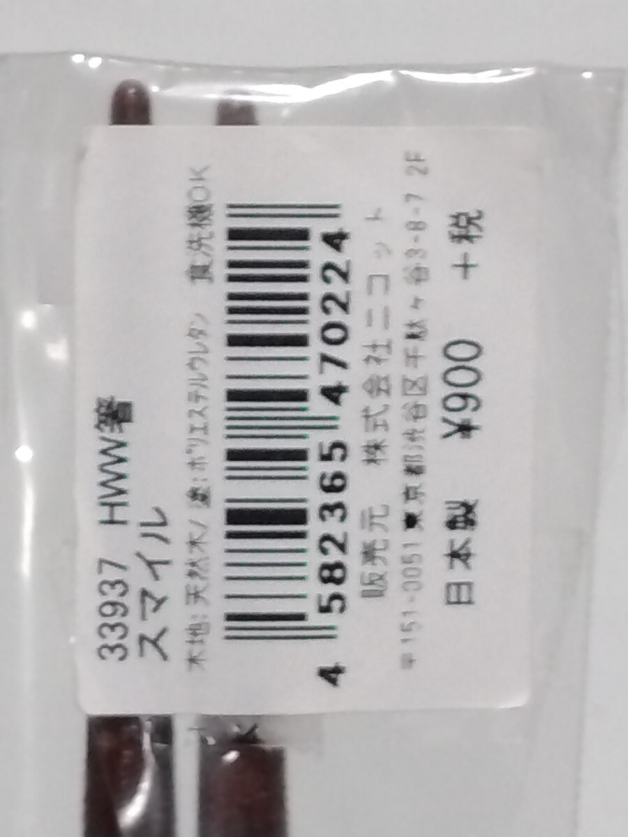 未使用品 NICOTT ニコット 天然木 HWW箸 スマイル 33937 日本製 23cm (2膳)