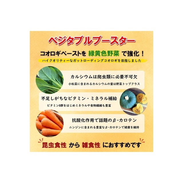 食いつきバツグンと大好評のコオロギペーストを緑黄色野菜で強化!