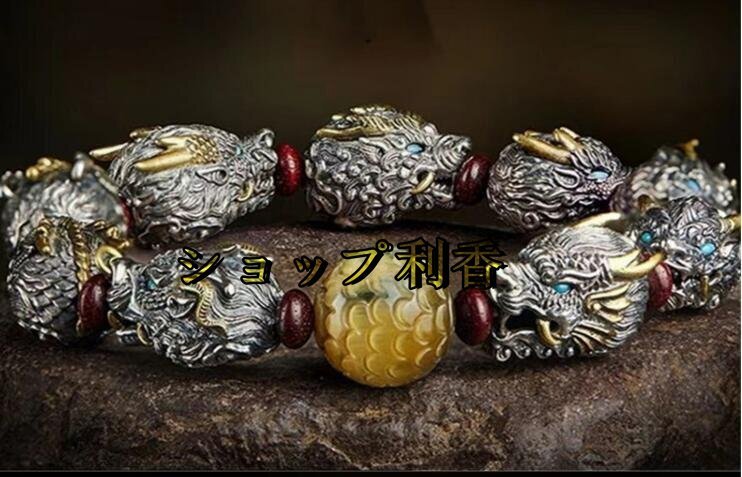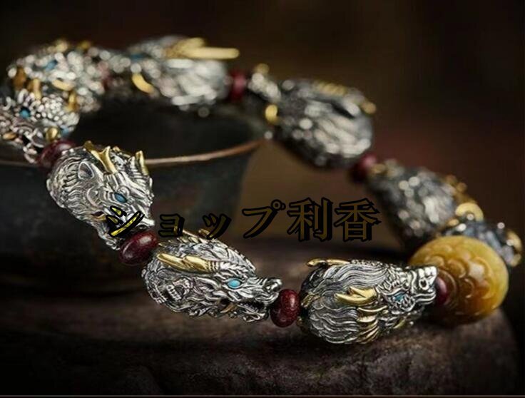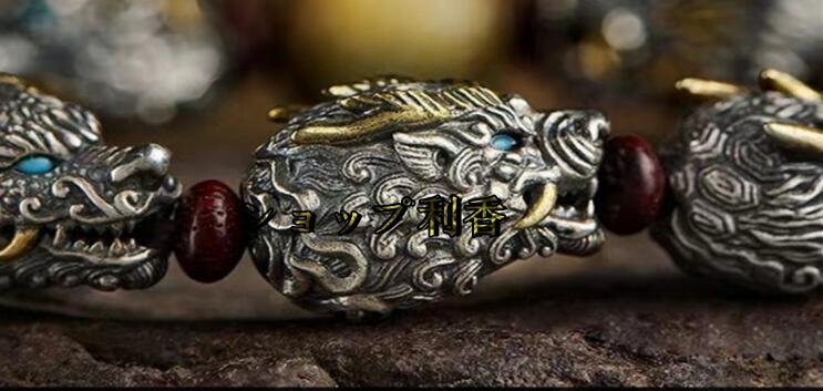 絶賛 !覇気潮高級感ちょうこく純銀龍頭ブレスレット