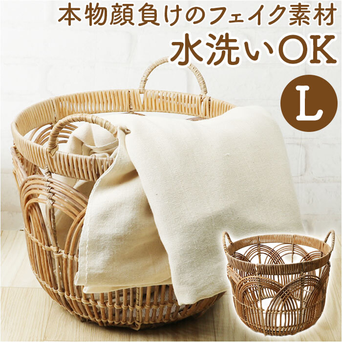商品説明 | ・・ざっくりおしゃれに収納♪水洗い可能な「Towc ペタル フェイクラタンバスケット」Lサイズが新登場。 ・【本物顔負けのフェイク素材】 ・天然素材風のリアルなプリントを施した、フェイク素材のすかし編みデザイン。自然な風合いで、暮らしに馴染むバスケット。 ・【水洗いできてお手入れラクラク】 ・汚れやホコリなどが気になったら、拭き取ったり水洗いOK!お手入れしやすく、衛生面も安心。 ・【ポイッと入れても絵になるデザイン】 ・お子さまのおもちゃやブランケットなどをIN。雑多な印象にならず、洗練された雰囲気に。 ・【サッと手に取れて傷つきもガード】 ・小物を入れてソファサイドやベッドサイドなどに置いておけば、すぐ手を伸ばせる!底面には敷き布付きで、小物が引っかかりにくく安心。 ・【ガシガシ使える耐久性】 ・各所にアイアンを入れ込み、丈夫で型崩れしにくい仕様。 ・【持ち運びもスマートなハンドル】 ・上部にハンドルが付いているので、サッと手に取れてお部屋間の移動もラクラク。 ・【どんなインテリアにも素敵にマッチ】 ・ナチュラルな北欧テイストや、ヴィンテージテイストなどとも相性抜群。空間にスッと溶け込み、整理整頓も楽しくラクに。 |